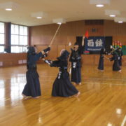 「錬ること百にして自ら得る」これは江南高校剣道部の理念である“百錬”の意味です。部員数は少ないですが、部員一人一人がこの言葉を心に置き、部全体のレベルが少しでも上がるように練習していきたいと思います。