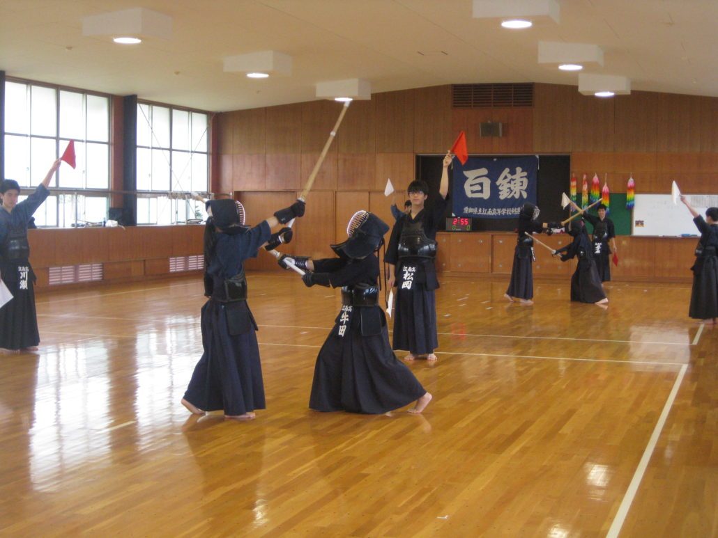 「錬ること百にして自ら得る」これは江南高校剣道部の理念である“百錬”の意味です。部員数は少ないですが、部員一人一人がこの言葉を心に置き、部全体のレベルが少しでも上がるように練習していきたいと思います。
