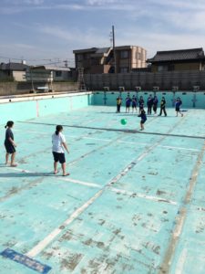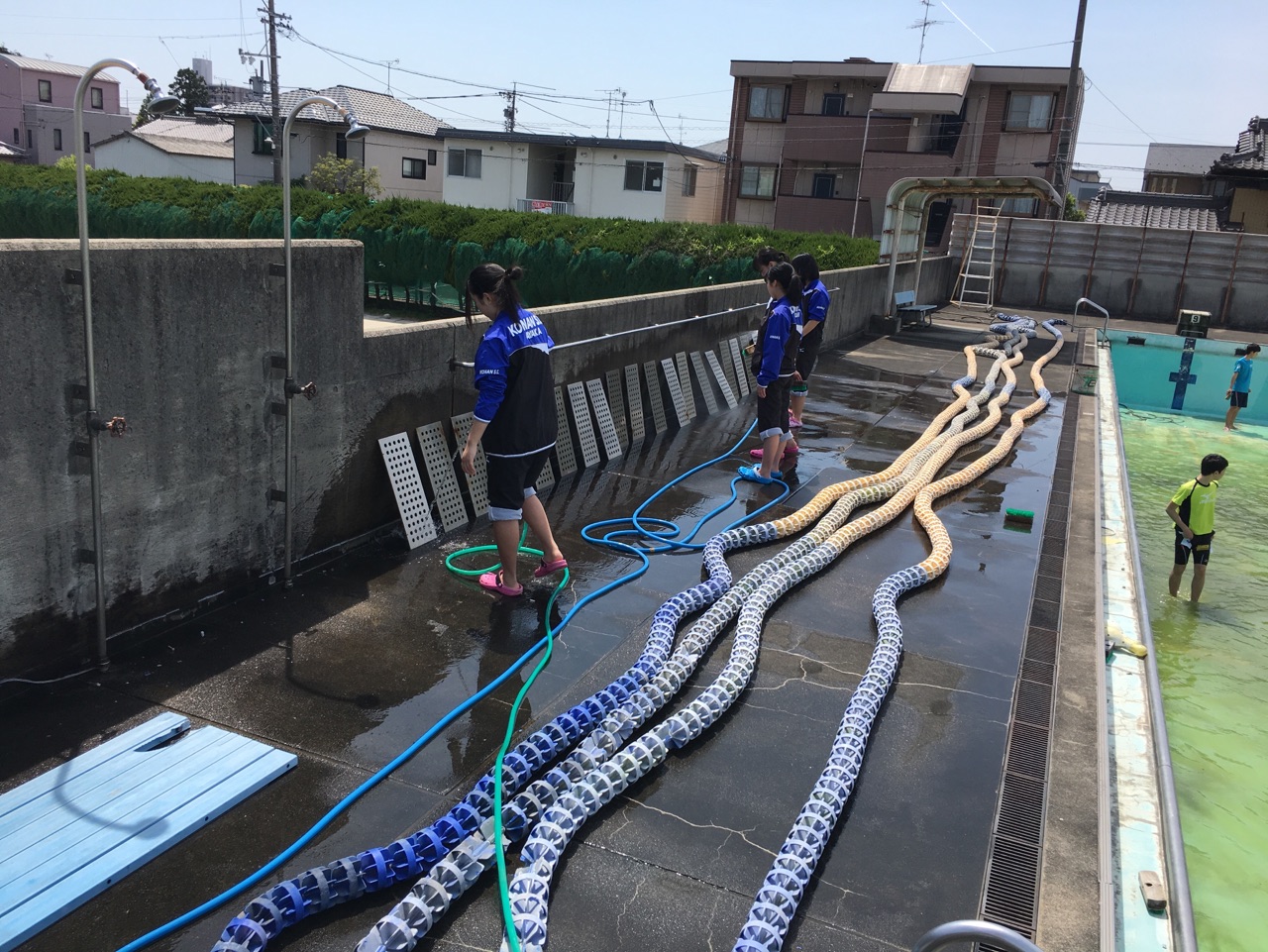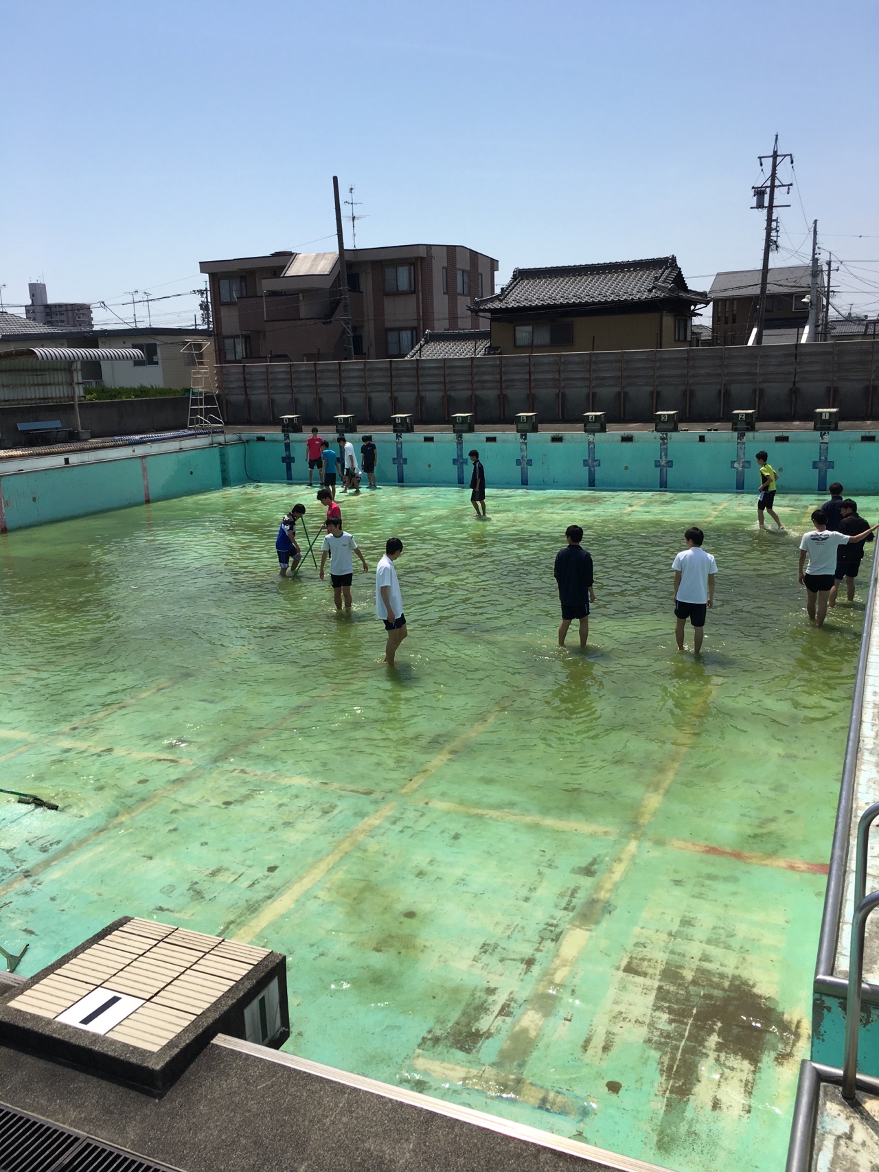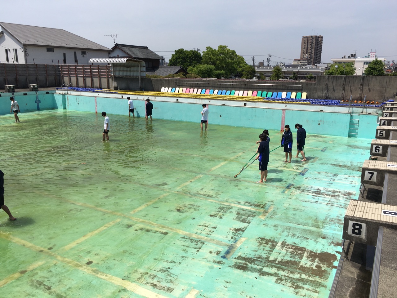 プール掃除 2018年4月26日/カテゴリ: 水泳, 部活動 /作成者: 江南高校 今年度は顧問も一新し、新体制での部活動となりました。部登録では1年生は男子9人、女子4人の計13人が新たに仲間に加わり、現在は陸上トレーニングに励んでいます。4月22日(日)にはプール掃除を行いました。緑に濁ったプールもすっかりきれいになり、4月末からは待ちに待ったプールでの部活動が始まります。3年生は最後の大会まであと1ヶ月半、悔いの残らないようしっかりと練習していきたいと思います。写真はプール掃除の様子です。1年に1日だけ水のないプールでドッジボールをしている女子も。 https://ko-nan.ed.jp/wp-content/uploads/2018/04/h30swim042204.jpg 1707 1280 江南高校 http://ko-nan.ed.jp/wp-content/uploads/2018/01/logo.png 江南高校2018-04-26 12:44:222018-04-26 12:44:22プール掃除