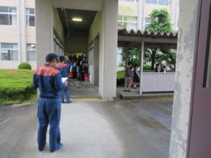 避難訓練を行いました 2018年5月9日/カテゴリ: 行事レポート /作成者: 江南高校 5月7日(月)に避難訓練を実施しました。当日は雨だったので、体育館に避難したあと、江南消防署の畑さんの講話を聞きました。南海トラフ地震も予想される中、被害軽減のために私たちができることは何かをわかりやすく話していただきました。今回の訓練や講話が、家庭での備蓄品の点検や家族間での連絡方法、避難場所を確認し合うきっかけになればと思います。 https://ko-nan.ed.jp/wp-content/uploads/2018/05/IMG_2025.jpg 3000 4000 江南高校 http://ko-nan.ed.jp/wp-content/uploads/2018/01/logo.png 江南高校2018-05-09 11:14:492018-05-09 11:14:49避難訓練を行いました