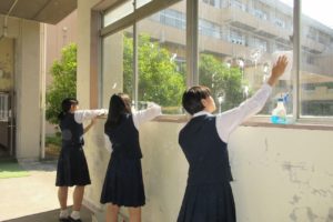 6月4日(月)全校生徒が協力して「環境美化活動」を行いました。日頃なかなか手がまわらない箇所もこの機会にきれいにすることができました。