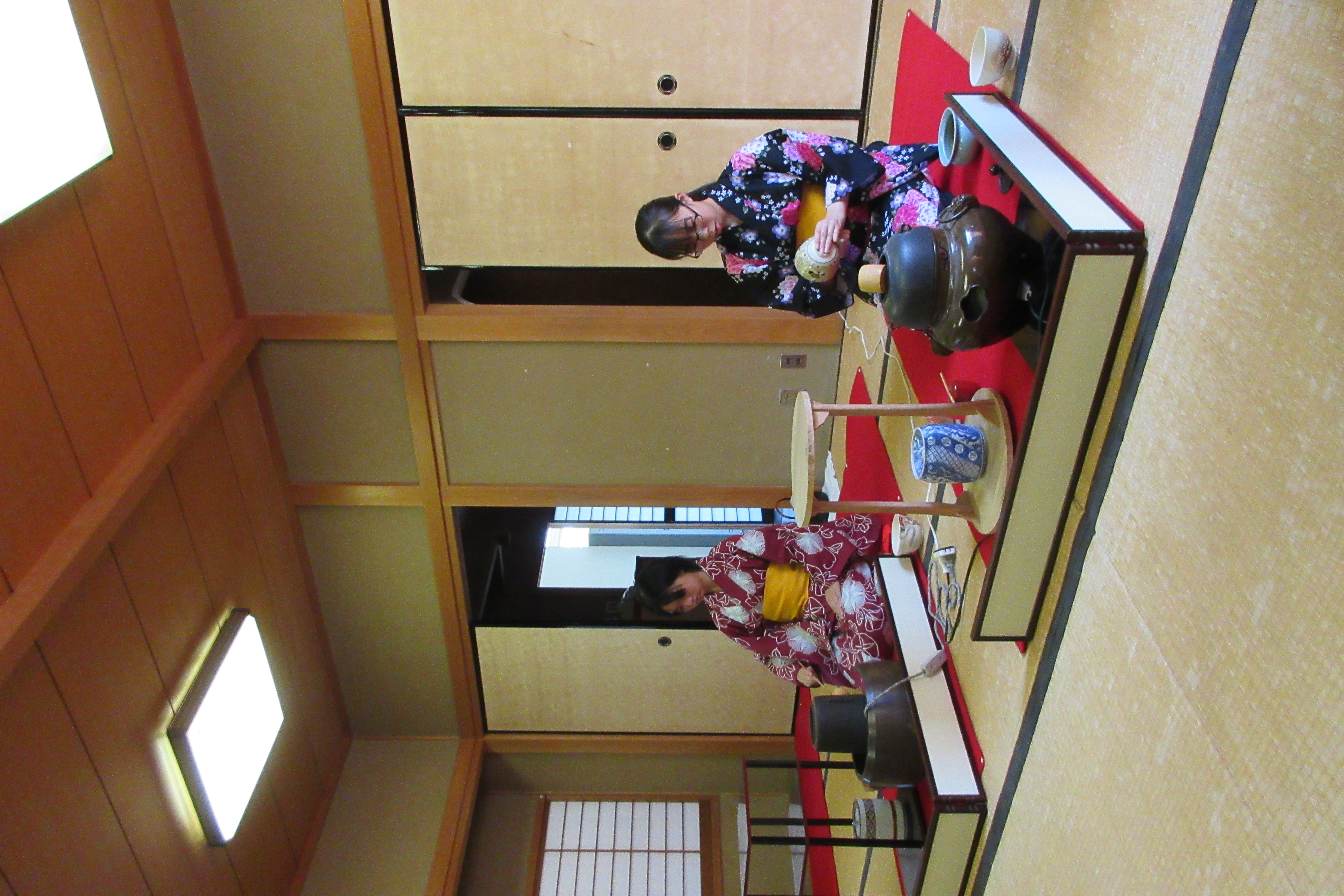 例年になく厳しい暑さの続く中、茶華道部では藤波祭でのお茶会にむけて練習に励んでいます。当日は浴衣を着るので、実際に浴衣の着付けも自分で行いお点前に臨みました。9/12にお茶会があるので、ぜひお稽古の成果を見に来て下さい。