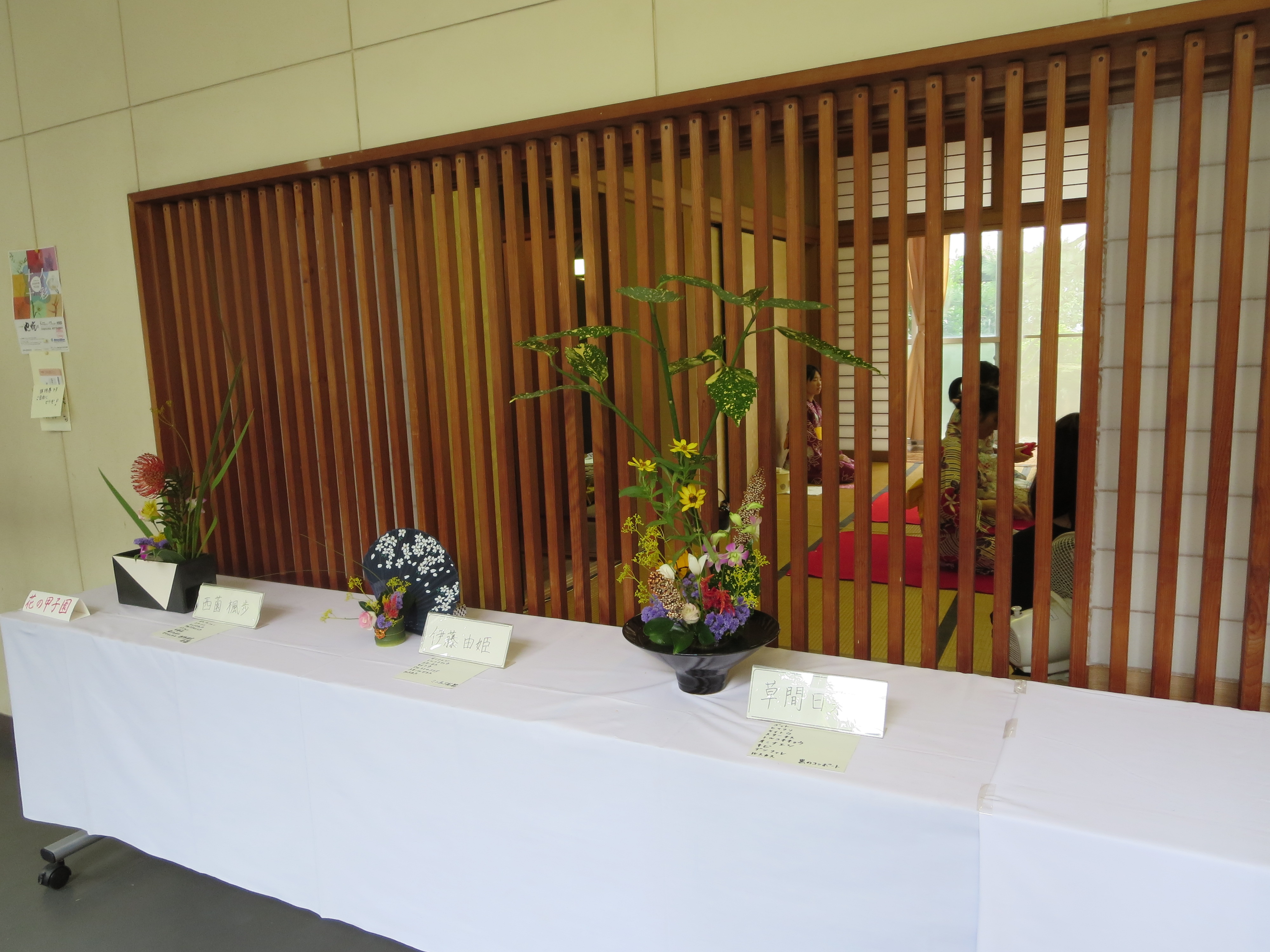 藤波祭で花展・お茶会をしました 2018年9月26日/カテゴリ: 茶華道, 部活動 /作成者: 江南高校今年も藤波祭(文化祭)に花展・お茶会を行いました。当日はたくさんの方に「自由花」や「盛り花」を見ていただき、お抹茶を楽しんでいただきました。日頃のお稽古の成果をお見せすることができたのではないかと思います。 ありがとうございました。 https://ko-nan.ed.jp/wp-content/uploads/2018/09/IMG_2180.jpg 3000 4000 江南高校 http://ko-nan.ed.jp/wp-content/uploads/2018/01/logo.png 江南高校2018-09-26 13:56:112018-09-26 13:56:11藤波祭で花展・お茶会をしました