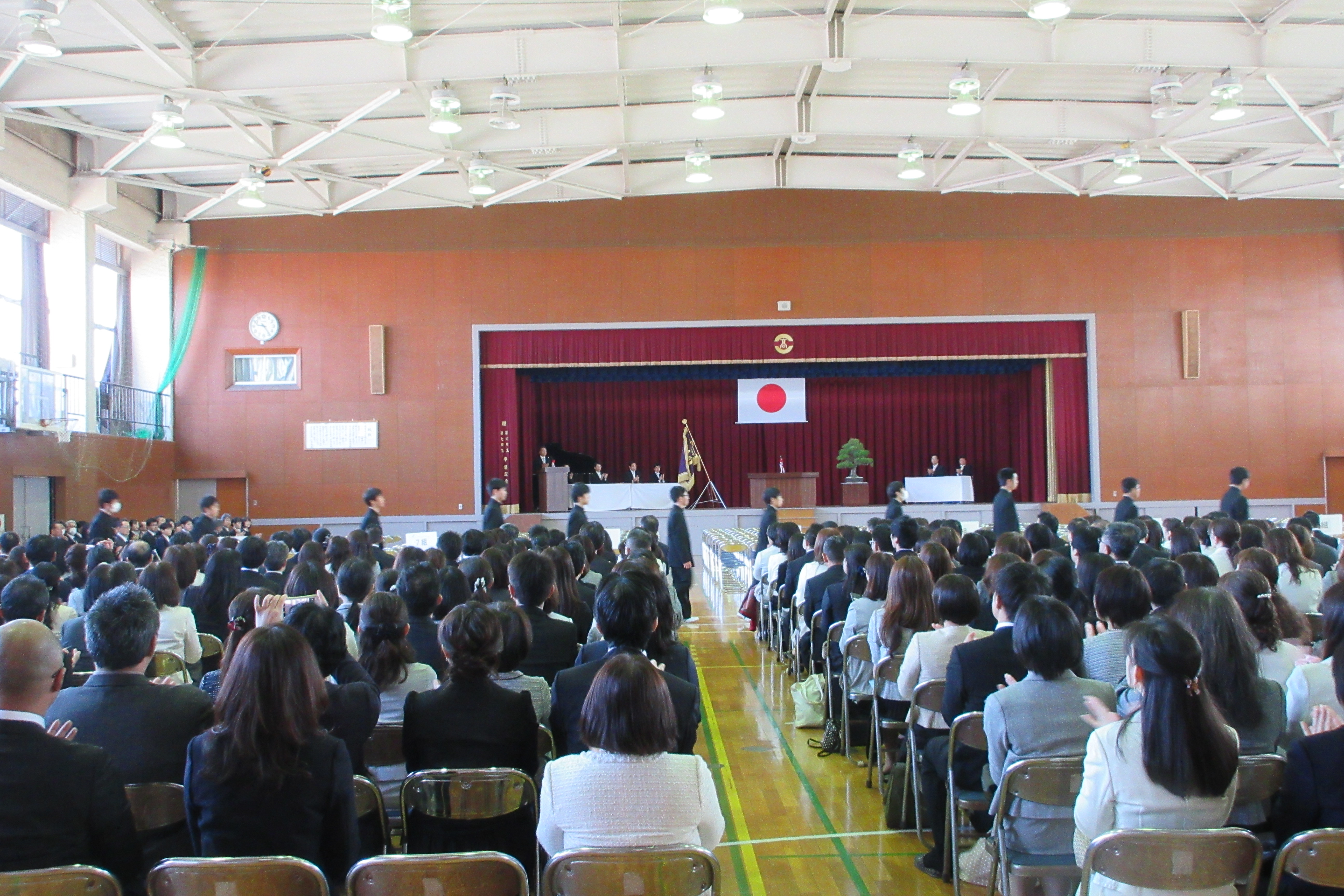 また、4/8には「入学式」がありました。満開の桜の祝福を受け、真新しい制服に身を包んだ40回生320名が式に臨みました。また、部活動有志265名による校歌の披露が晴れの門出に花を添えました。