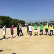 「攻撃の崩し」というテーマでプロ指導者によるトレーニングが開始された。選手たちは、初めての経験からか緊張した面持ちであったが、同氏の流暢な日本語と経験豊富な指導力ですぐにリラックスした。マークを外す・スペースを作る・相手の裏をとる等、相手の状況に応じた様々な攻撃のバリエーションをわかりやすく、イメージしやすく進められていった。トレーニングの経過とともに今までにない攻撃が見られるようになり、選手のみならず顧問にとっても有意義で贅沢な約3時間であった。