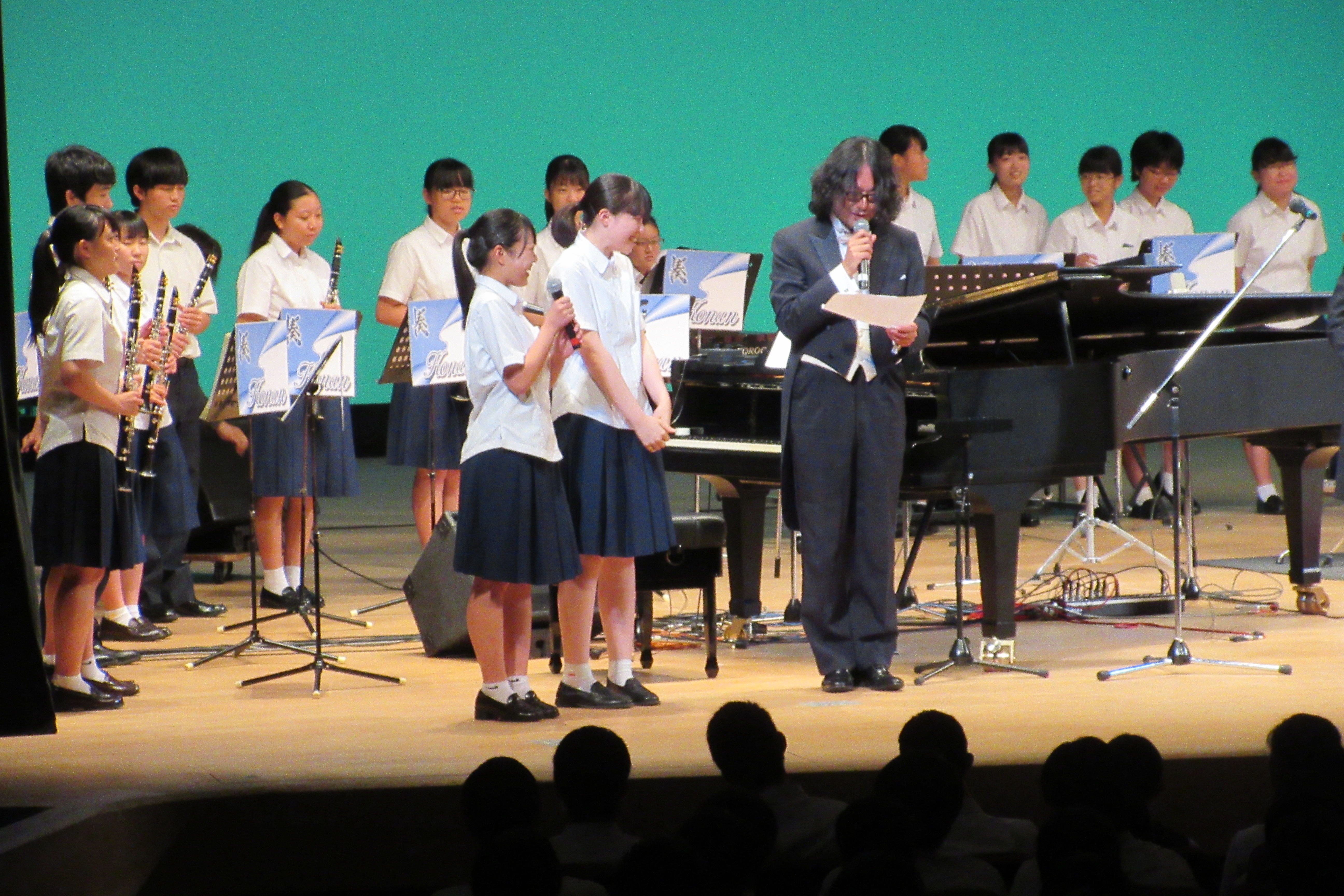 令和元年度の「芸術鑑賞会」を行いました 2019年7月24日/カテゴリ: 行事レポート /作成者: 江南高校7月22日に「芸術鑑賞会」を行いました。今年はピアノとバイオリンのデュオ「スギテツ」のコンサートを鑑賞しました。 耳なじみのあるメロディ、楽しいアレンジによる演奏、珍しいアルミ製のバイオリンの音色など、バラエティに富んだ内容で、生徒たちも熱心に聴き入り、「ブラボー!」の掛け声が響く場面もありました。 ラストの、本校吹奏楽部とのコラボも楽しく、思い出に残る鑑賞会となりました。 https://ko-nan.ed.jp/wp-content/uploads/2019/07/IMG_2550.jpg 3456 5184 江南高校 http://ko-nan.ed.jp/wp-content/uploads/2018/01/logo.png 江南高校2019-07-24 09:53:582019-07-24 09:53:58令和元年度の「芸術鑑賞会」を行いました