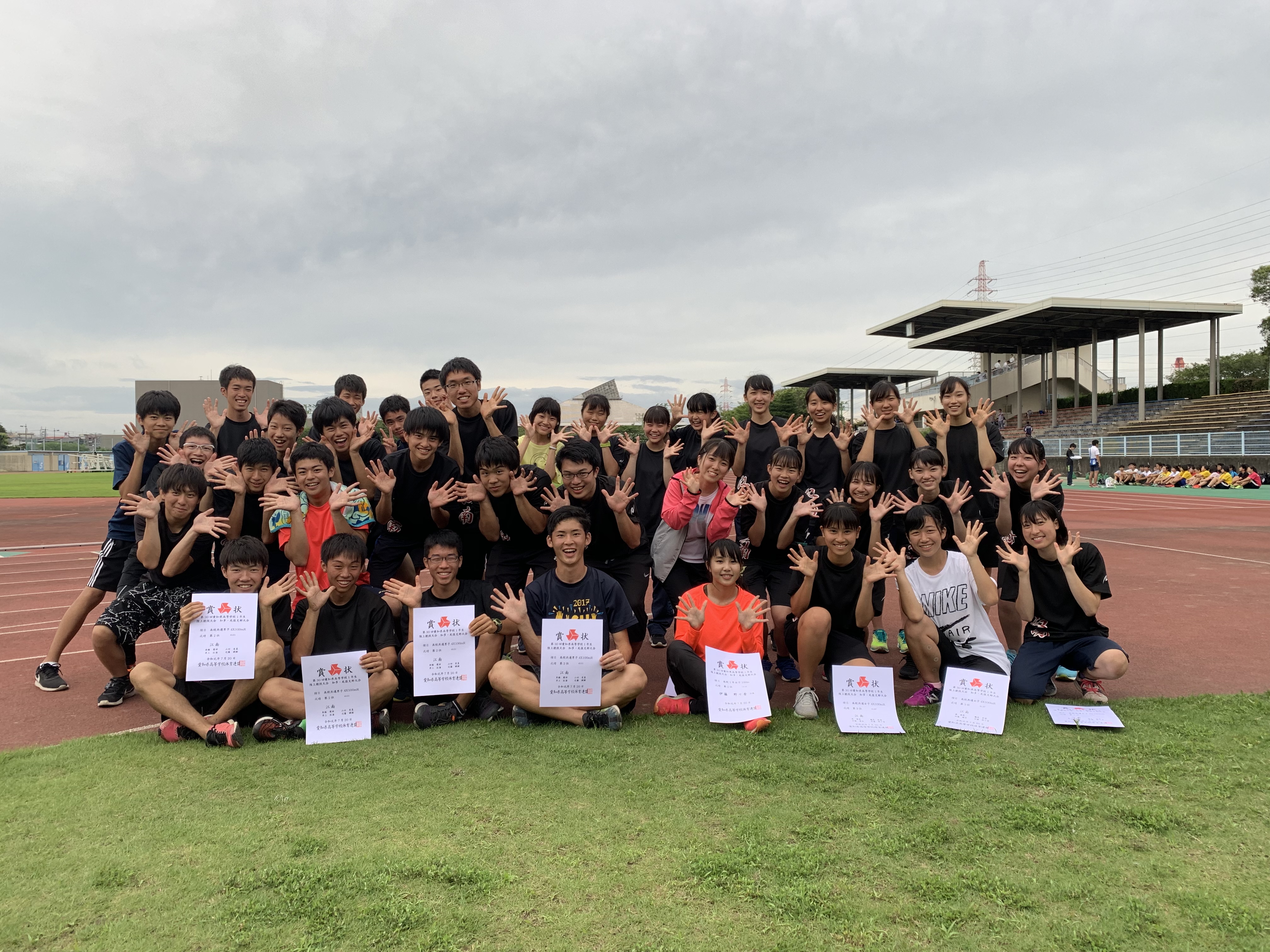 高校共通男子4×100mリレー:43秒51(第2位)、高校共通女子4×100mリレー:51秒57(第3位)、高校1年女子100m:13秒10(第2位)、高校1年女子400m:1分2秒79(第3位)で賞状を獲得しました。