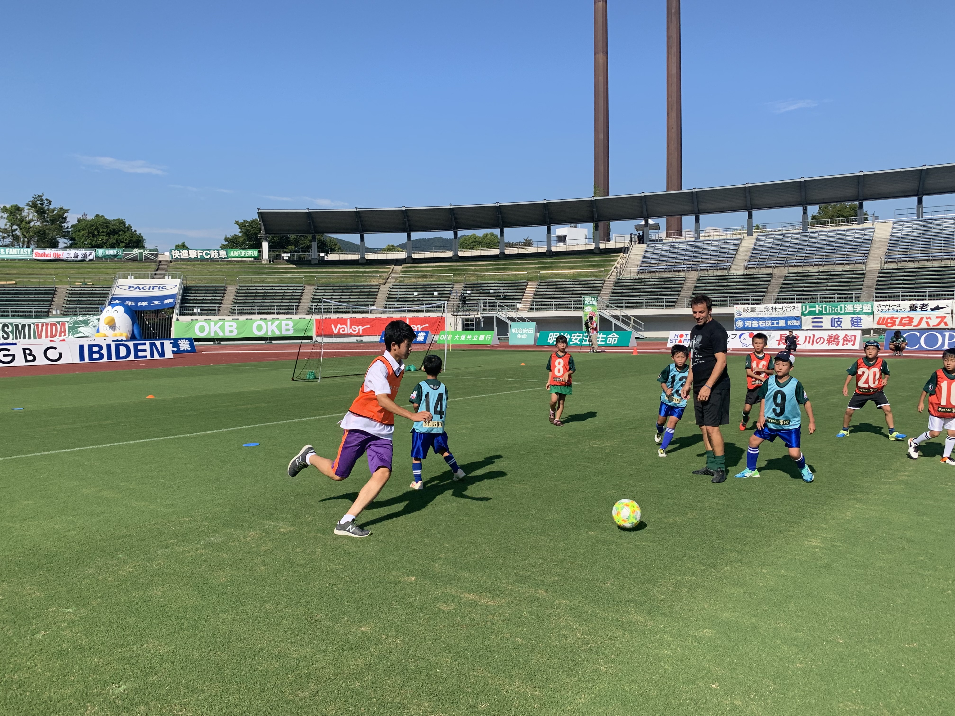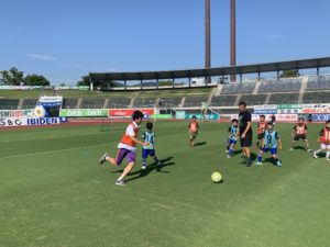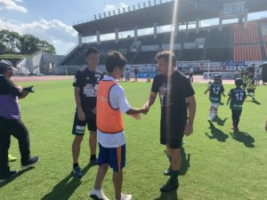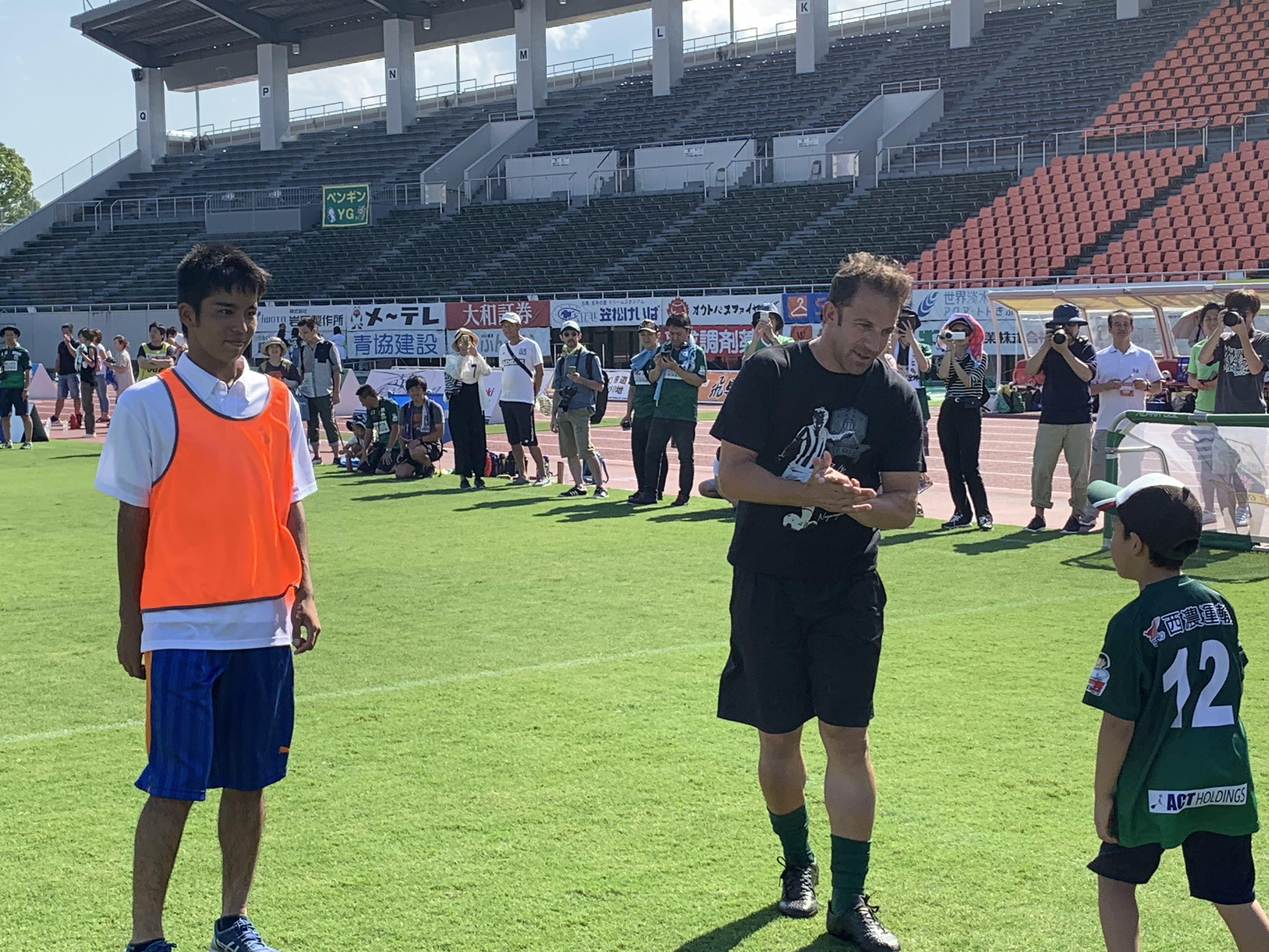 また、試合前のイベントとして開催されたサッカー教室のボランティアも行った。サッカー教室の特別ゲストとしてデル・ピエロ氏が来場。デル・ピエロ氏は、最上級のテクニックと創造性でイタリア代表やユベントスで活躍をし、世界中のサッカーファンを魅了した選手の一人である。このような世界的スーパースターの同氏と一緒にボールを蹴る姿も見られ、特別な時間を過ごした。