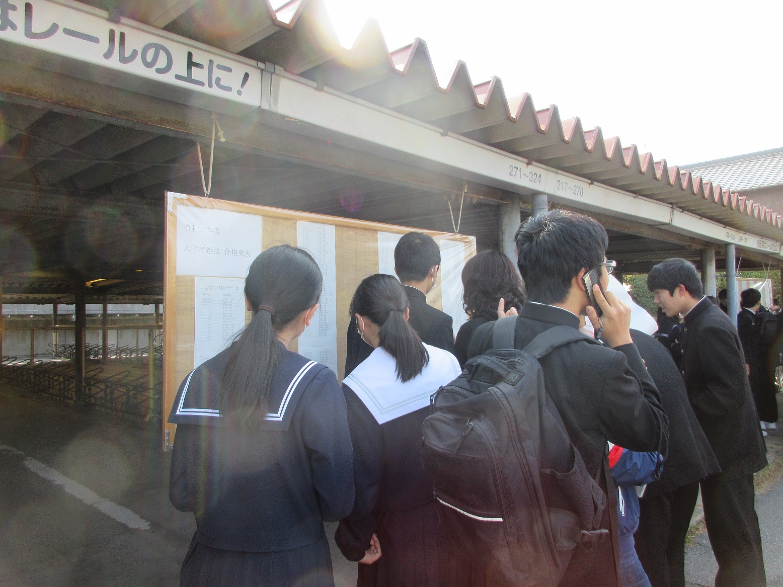 合格発表がありました 2020年3月19日/カテゴリ: 行事レポート /作成者: 江南高校3月18日、高校入試の合格発表がありました。午前10時の発表を今か今かと待つ中学生や保護者で、掲示板の前はひとだかりができていました。「やったー!!」「いっしょに通えるね!」と喜びの声も聞かれました。 本校に入学される皆さん、合格おめでとうございます。4月からいっしょに学べることを楽しみにしています! https://ko-nan.ed.jp/wp-content/uploads/2020/03/IMG_3103.jpg 351 467 江南高校 http://ko-nan.ed.jp/wp-content/uploads/2018/01/logo.png 江南高校2020-03-19 11:17:592020-03-19 14:42:36合格発表がありました