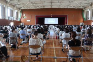 3年進学説明会(5月30日) 2020年5月30日/カテゴリ: 学校日記 /作成者: 江南高校本日は、午後1時から午後3時過ぎまで、体育館において3年進学説明会を開催しました。第1部では、河合塾から講師をお招きし、「受験生の保護者としての心構え」という演題で、2020年度入試の実施状況や2021年から始まる大学入学共通テスト、保護者の心構えなどについて御高話をいただきました。三つの「あ」で学習に臨もうという話では、受験生は「あせらない」、「あわてない」、「あきらめない」ことを強調されました。第2部では、進路指導主事から卒業生の進路状況(174名の国公立大学合格)や2021年入試に向けての本校の進路計画などについて話がありました。そして、最後に学年主任から「今の思い」と「保護者の皆様への御家庭でのお願い」について話がありました。学校と保護者の皆様で手を携えて、お子様の進路希望実現に向け、「前へ」進んでいきたいと思います。参加いただいた278名の皆様に御礼申し上げます。 https://ko-nan.ed.jp/wp-content/uploads/2020/05/IMG_2524-e1590820102696.jpg 200 300 江南高校 http://ko-nan.ed.jp/wp-content/uploads/2018/01/logo.png 江南高校2020-05-30 16:07:362020-05-30 16:07:363年進学説明会(5月30日)