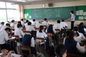本日は、期末考査期間中ではありましたが、3学年そろっての土曜教室でした。1・2年生は、午前中に講座を受け、多くの生徒が午後からも自学自習を行いました。3年生は、終日、講座を受けたり、自学自習を行いました。また、野球部は明日の公式戦に備えて、体育館等で練習を行いました。残念ながら雨天のため、試合は7月11日以降に延期となりました。