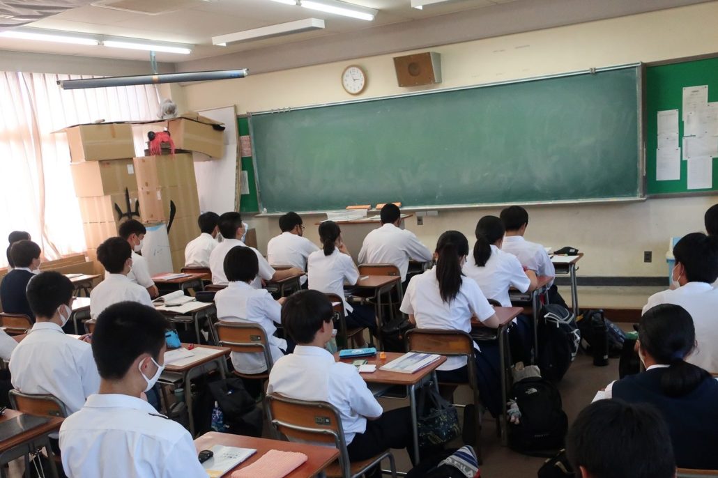 2学期始業式(8月20日) 2020年8月20日/カテゴリ: 学校日記, 行事レポート /作成者: 江南高校本日から2学期が始まりました。授業に先立って、放送で始業式を行いました。式辞では、校長から名古屋大学の福和伸夫教授の防災講話が紹介され、南海トラフ地震は近い将来確実に起こるので、一人一人の備えで大切であるという話がありました。また、コロナを正しく恐れることが引き続き必要で、三密防止・マスク着用・手洗い励行の呼び掛けがありました。式後には、夏季休業中の公式戦で良い成績を収めた水泳部とテニス部の生徒に対する表彰と、保健指導課からのコロナ・熱中症への注意喚起が行われました。 https://ko-nan.ed.jp/wp-content/uploads/2020/08/IMG_5086-e1597904763495.jpg 200 300 江南高校 http://ko-nan.ed.jp/wp-content/uploads/2018/01/logo.png 江南高校2020-08-20 15:32:032020-08-20 15:32:032学期始業式(8月20日)