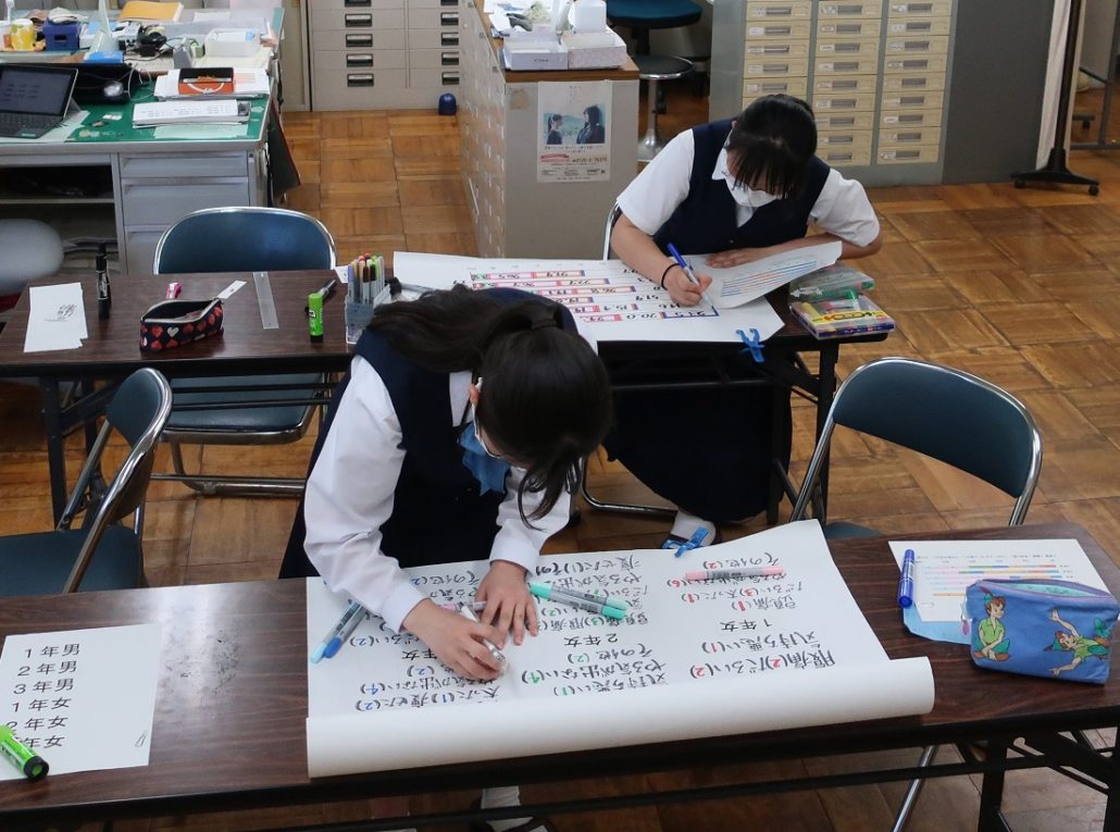 保健委員会の活動(9月2日) 2020年9月2日/カテゴリ: 学校日記 /作成者: 江南高校保健委員会では、保健に関する生徒アンケートを行いました。本日は、授業後、保健室において保健委員がその結果をグラフなどの形で模造紙にまとめる作業を行いました。とても丁寧に、見やすくまとめられています。藤波祭において、被服室で掲示されますので、多くの皆さんの来室を待っています。 https://ko-nan.ed.jp/wp-content/uploads/2020/09/IMG_5433-e1599034401637.jpg 200 300 江南高校 http://ko-nan.ed.jp/wp-content/uploads/2018/01/logo.png 江南高校2020-09-02 17:31:072020-09-02 17:31:07保健委員会の活動(9月2日)