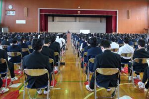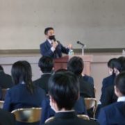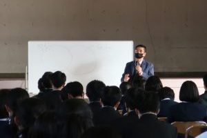本日、1年生は「総合的な探究の時間(探Q)」において、「仕事に生かす勉強法」という演題で、(株)ジェイアンドティシステムズの社長様からご講演をいただきました。ご自身の経験やグローバルな視点から具体例を挙げて話され、「学校の勉強は早く済ませ、自分の興味あることに力を入れ、将来の仕事につなげよう」「自分自身のためだけでなく、社会の役に立つために勉強をしてほしい」などのメッセージをいただきました。多くの生徒が自分の将来を考える上でヒントをつかむことができたのではないかと思います。ありがとうございました。