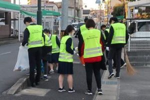 本日は授業後に、江南市の「こうなん美化ボランティア(アダプトプラン)」に生徒会執行部の皆さんと有志の先生方が参加して、本校正門前から江南駅までの歩道の清掃活動を行いました。参加の皆さんありがとうございました。
