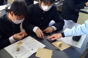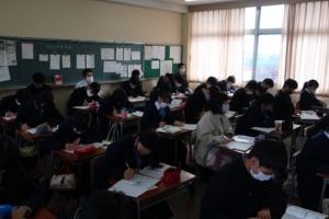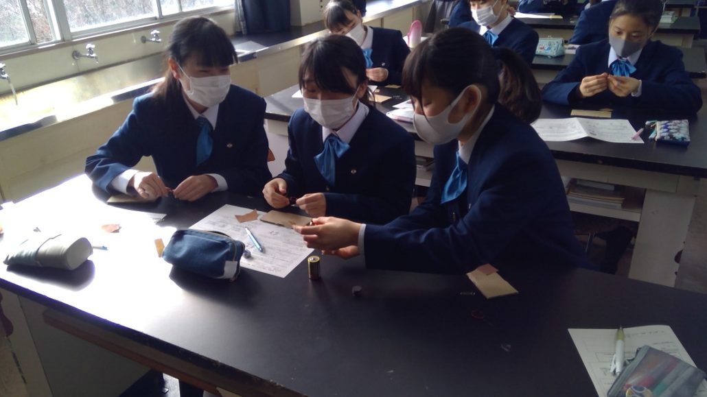 本日は、第4時限に1年8組の「数学Ⅱ」で、5時限に1年1組の「物理基礎」で研究授業が行われました。数学は、複素数という新しい単元で、概念を学んだ後、練習問題に取り組みました。物理は電気エネルギーの単元で、電気モーターの原理を学んだ後、クリップモーターの作成に取り組みました。1・2年生は、昨日から学年末考査の期間に入っています。計画を立てて取り組んでください。3年生は、授業は今日で一区切りです。国公立二次試験に向けて、最後まで全力で取り組みましょう。