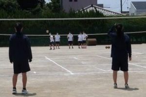 今日は、暑くなりました。午前の3年生のソフトボールやバレーボールの授業では、実技テストが行われました。また、午後の1年生のバレーボールの授業では、大学の先生が見守る中、教育実習生が研究授業を行いました。
