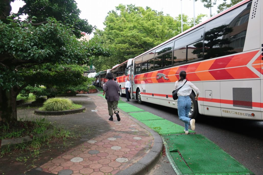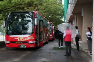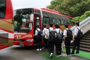本日は、1・3年生の遠足があります。予定通り集合した生徒らは、3年生は8時15分にナガシマスパーランドに向けて、1年生は9時に名古屋港水族館に向けて出発しました。(写真は、出発前の様子です。)