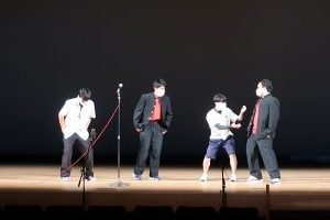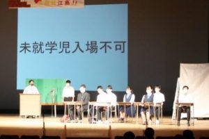藤波祭1日目①(9月7日) 2021年9月7日/カテゴリ: 学校日記 /作成者: 江南高校藤波祭の文化祭が開幕しました。本日は、江南市民文化会館大ホールにおいて、午前に3年生が、午後に2年生が、舞台上で劇や踊りを披露しました。感染防止の観点から、会場に入れるのは1学年だけでしたので、他の学年は、中継動画を教室で鑑賞しました。3年生の作品は、学校を舞台としたオリジナリティーに富んだものが多く、生徒の笑いや悲鳴を誘っていました。 https://ko-nan.ed.jp/wp-content/uploads/2021/09/s_IMG_1122-e1630998144272.jpg 200 300 江南高校 http://ko-nan.ed.jp/wp-content/uploads/2018/01/logo.png 江南高校2021-09-07 17:22:022021-09-07 17:22:02藤波祭1日目①(9月7日)