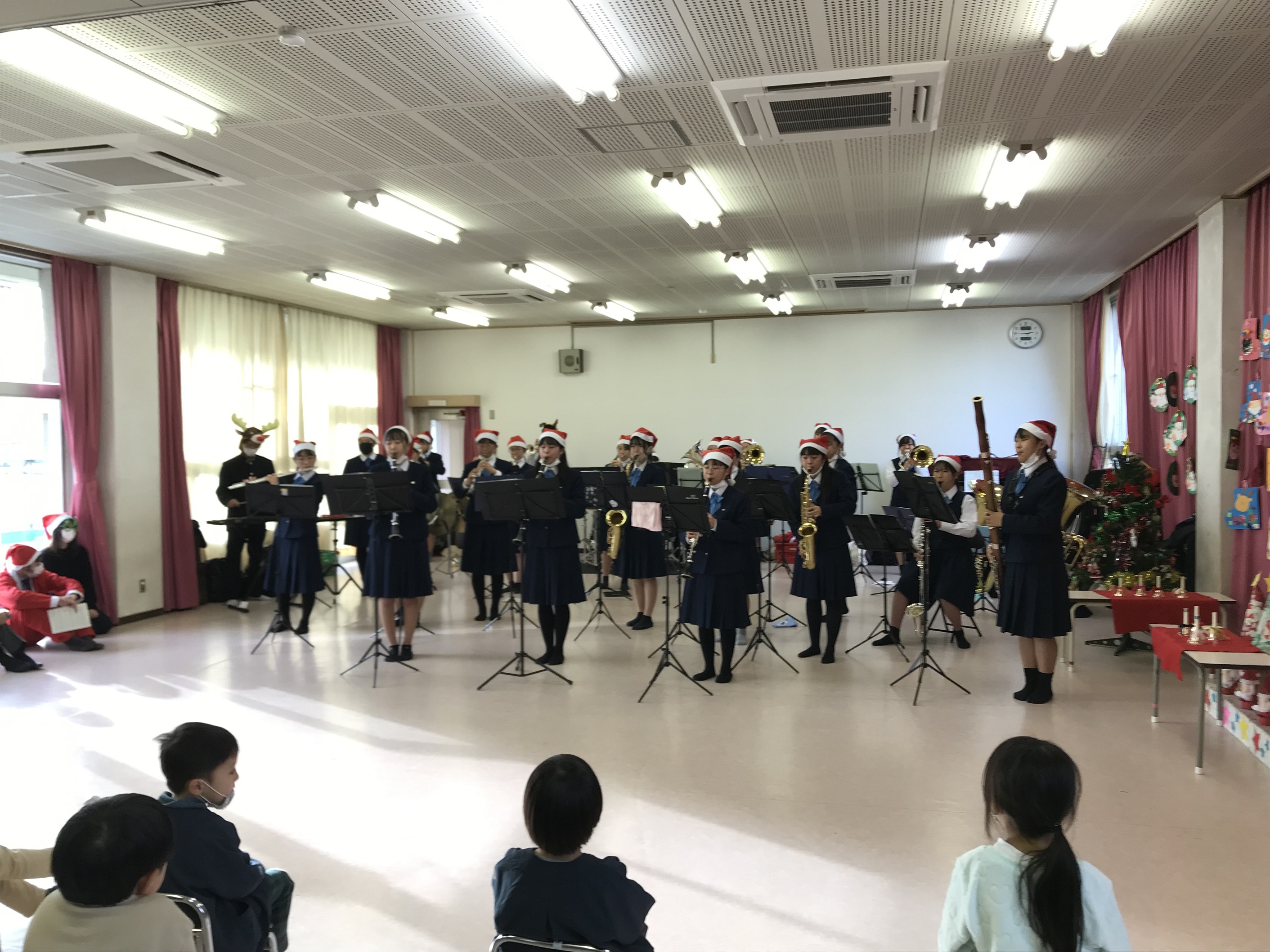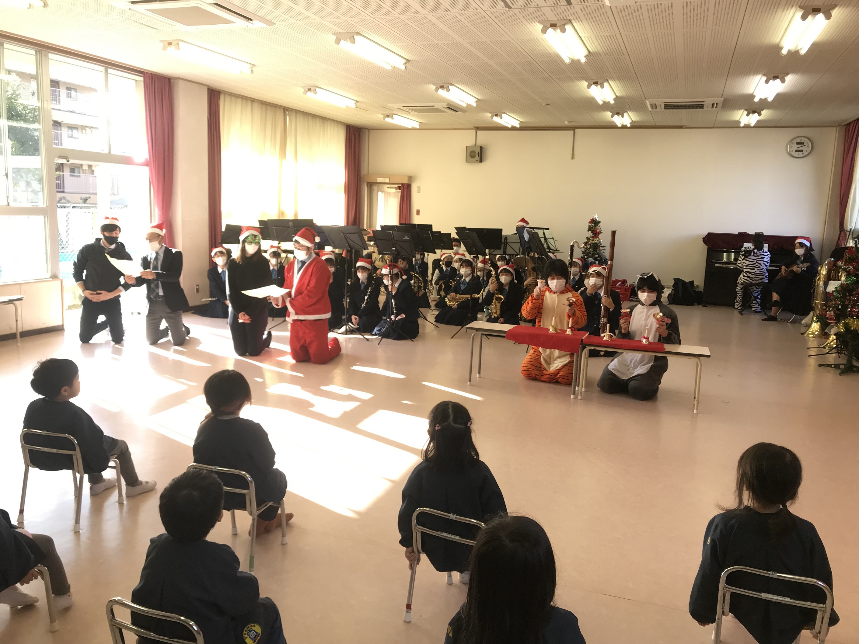 クリスマス保育園訪問 2021年12月23日/カテゴリ: 行事レポート /作成者: 江南高校12/20(月)にこの時期恒例の「保育園訪問」を行いました。 生徒会執行部や吹奏楽部を中心に、学校近くの「江南市立中央保育園」を訪れ、クリスマスの歌や演奏を披露し、園児たちと楽しい時間を過ごしました。 https://ko-nan.ed.jp/wp-content/uploads/2021/12/IMG_3154.jpg 2117 2823 江南高校 http://ko-nan.ed.jp/wp-content/uploads/2018/01/logo.png 江南高校2021-12-23 12:27:422021-12-23 12:27:42クリスマス保育園訪問