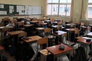 避難訓練(5月9日) 2022年5月9日/カテゴリ: 学校日記 /作成者: 江南高校本日、第6限のLTでは避難訓練を行いました。一時雨が降っていたこともあり、雨天バージョンで実施しました。担当教員からの放送による指示で、生徒らはシェイクアウト動作をとり、訓練に参加しました。その後、放送により防災に関するクイズが出題され、生徒らは〇✖で答えていました。 https://ko-nan.ed.jp/wp-content/uploads/2022/05/s_IMG_3940-e1652085614840.jpg 200 300 江南高校 http://ko-nan.ed.jp/wp-content/uploads/2018/01/logo.png 江南高校2022-05-09 17:56:142022-05-09 17:56:14避難訓練(5月9日)
