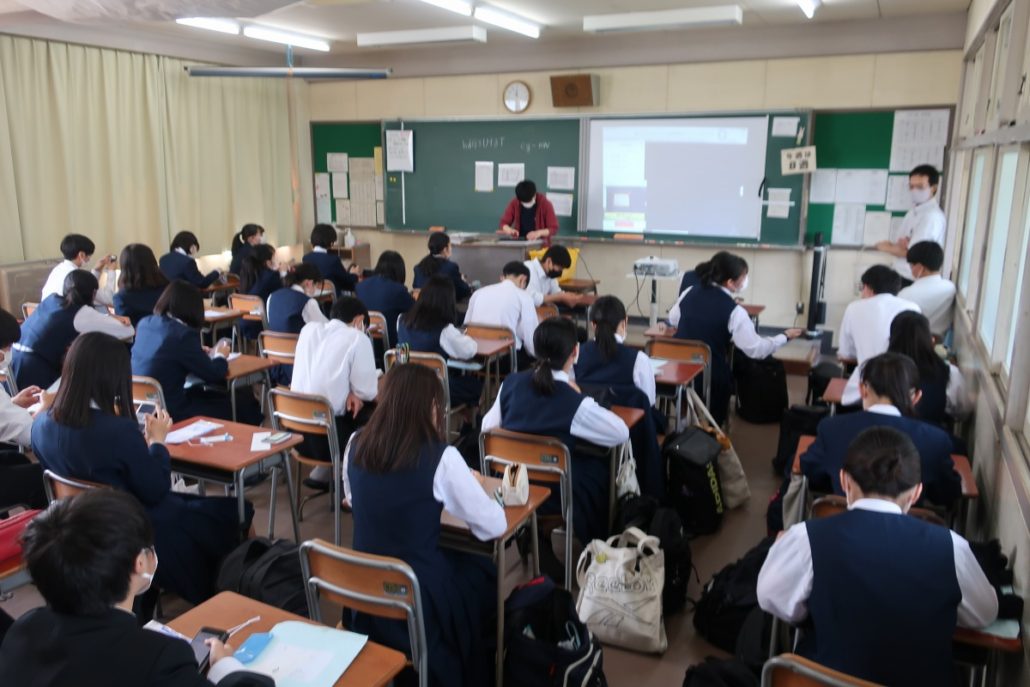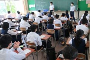 考査終了(5月18日) 2022年5月18日/カテゴリ: 学校日記 /作成者: 江南高校本日で1学期中間考査が終了しました。考査後には、放送で交通安全講話や生徒会認証式、部活動の表彰、諸注意などがありました。その後、各教室ではBYOD回線の接続テストやアンケートなどが行われました。2年生は、修学旅行が近づいてきました。感染防止対策を徹底して過ごしていきましょう。また、午後からは活発に部活動が行われました。 https://ko-nan.ed.jp/wp-content/uploads/2022/05/s_IMG_3970-e1652872534264.jpg 200 300 江南高校 http://ko-nan.ed.jp/wp-content/uploads/2018/01/logo.png 江南高校2022-05-18 20:21:352022-05-18 20:21:35考査終了(5月18日)