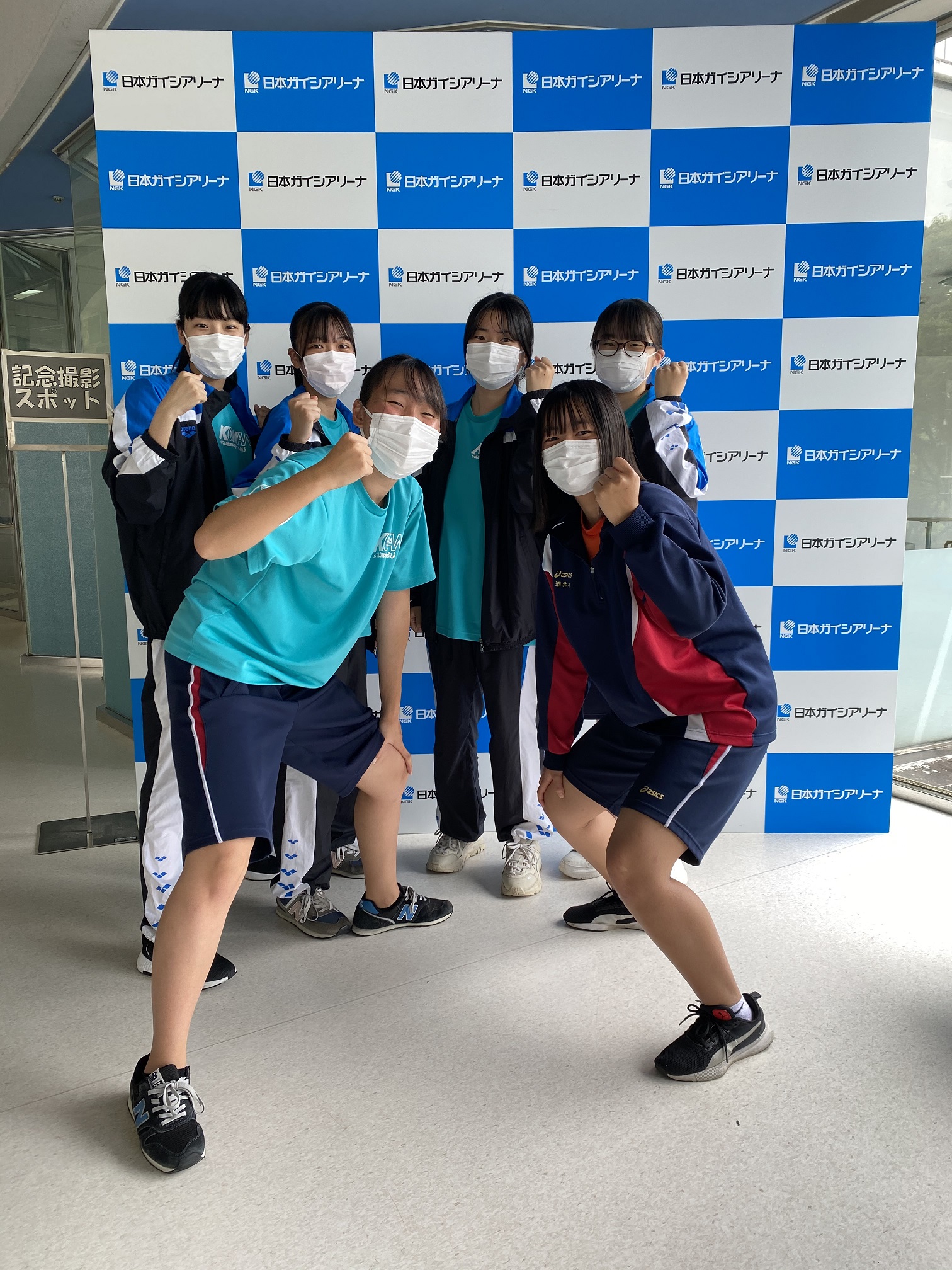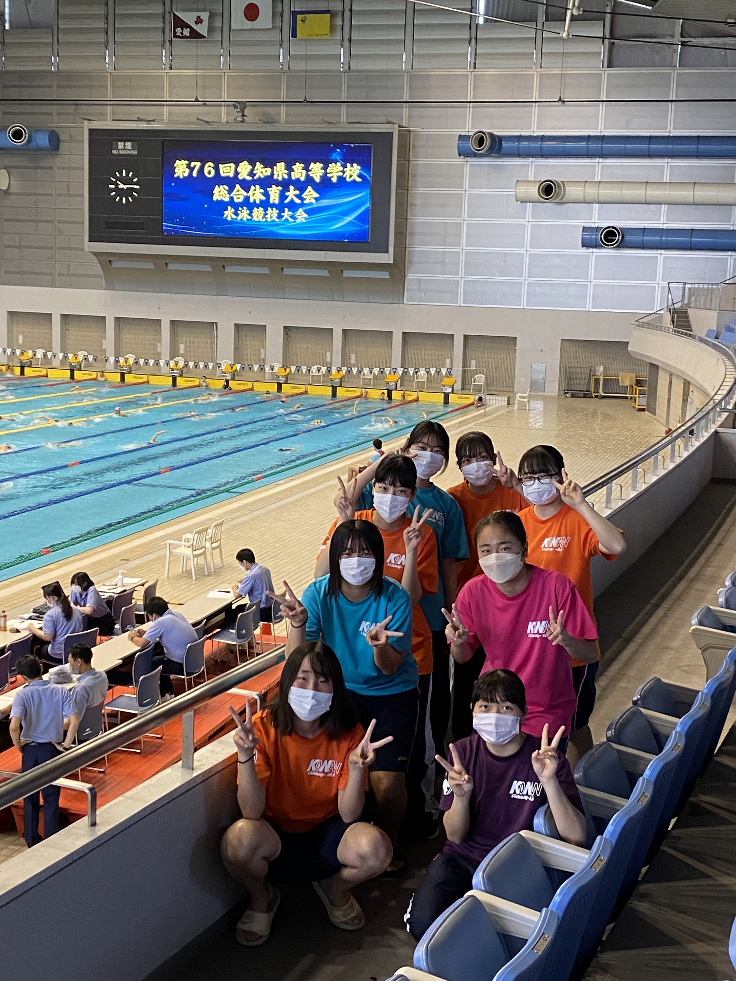 【総体県予選出場メンバー】【選手】4×100mメドレーリレー(中島和奏さん・神林香生さん・伊藤樹里さん・酒井千早季さん)、200m個人メドレー(中島和奏さん)、200m平泳ぎ(神林香生さん)【マネージャー】岡嵜萌恵さん・鈴木颯乃さん・田村かなるさん・内藤日菜さん