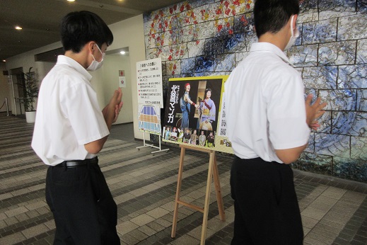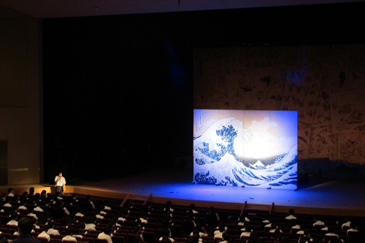 1学期終業式と芸術鑑賞会 2022年7月26日/カテゴリ: 行事レポート /作成者: 江南高校7/21(木)に1学期の終業式と芸術鑑賞会を行いました。 放送で式をおこなったあと、2・3年生と1年生に分かれて、江南市民文化会館大ホールで「ミュージカル北斎マンガ」を鑑賞しました。わらび座の皆さんのパワフルで熱のこもった舞台に魅了されました。 https://ko-nan.ed.jp/wp-content/uploads/2022/07/IMG_3048.jpg 346 519 江南高校 http://ko-nan.ed.jp/wp-content/uploads/2018/01/logo.png 江南高校2022-07-26 13:30:052022-07-26 13:30:051学期終業式と芸術鑑賞会
