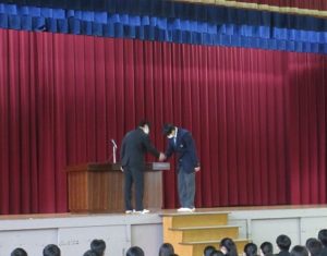 久し振りに3学年が一堂に会しての式となりました。