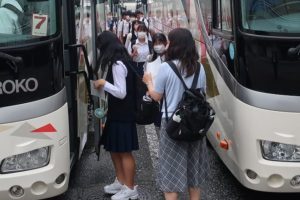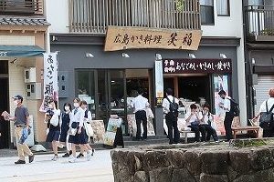 予定どおり広島駅に到着後、生徒らはバスに乗り込み宮島口まで移動し、フェリーに乗船しました。宮島では、厳島神社へ出かけたのち、曇り空の下、宮島内の散策を楽しみました。