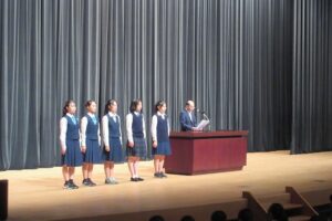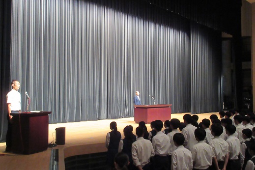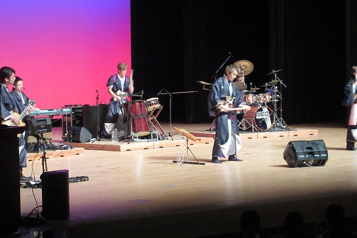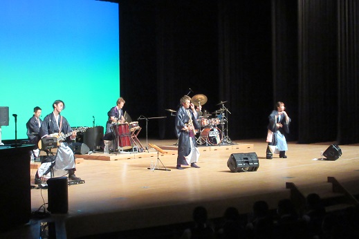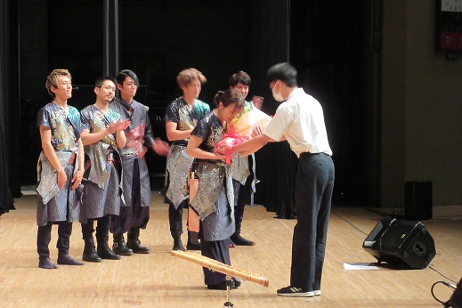 1学期終業式と芸術鑑賞会 2023年7月21日/カテゴリ: 行事レポート /作成者: 江南高校7/20(木)に1学期の終業式と芸術鑑賞会を行いました。 江南市民文化会館大ホールで終業式、新体操部の受納式をおこなったあと、和洋折衷音楽「ネオ・ジャパネスク」の演奏を鑑賞しました。尺八や篠笛、和太鼓と洋楽器が融合した、パワフルで熱のこもった演奏に魅了されました。 https://ko-nan.ed.jp/wp-content/uploads/2023/07/IMG_3465.jpg 346 519 江南高校 http://ko-nan.ed.jp/wp-content/uploads/2018/01/logo.png 江南高校2023-07-21 17:00:102023-07-21 17:00:101学期終業式と芸術鑑賞会