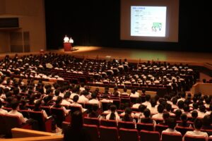 学校見学会(8月24日) 2023年8月24日/カテゴリ: 学校日記 /作成者: 江南高校本日はあいにくの雨天となりましたが、約900名の中学生の皆さんにご参加いただき、学校見学会をHome&nicoホール(江南市民文化会館)と本校を会場に実施しました。市民文化会館では、校長挨拶の後、生徒会役員によるスライドを使った本校の学校紹介、ビデオを使った部活動紹介、案内係の在校生によるひとこと紹介などがありました。その後、案内係の誘導で本校に移動し、学校内の施設等を見学いただきました。 中学生の皆さんはじめ、付き添いの保護者の皆様、中学校関係者の皆様、ご参加いただきありがとうございました。また、生徒会役員や案内係の皆さん、関係の先生方にお礼申し上げます。 https://ko-nan.ed.jp/wp-content/uploads/2023/08/s_IMG_7621-e1692849595454.jpg 200 300 江南高校 http://ko-nan.ed.jp/wp-content/uploads/2018/01/logo.png 江南高校2023-08-24 13:29:222023-08-24 13:29:22学校見学会(8月24日)