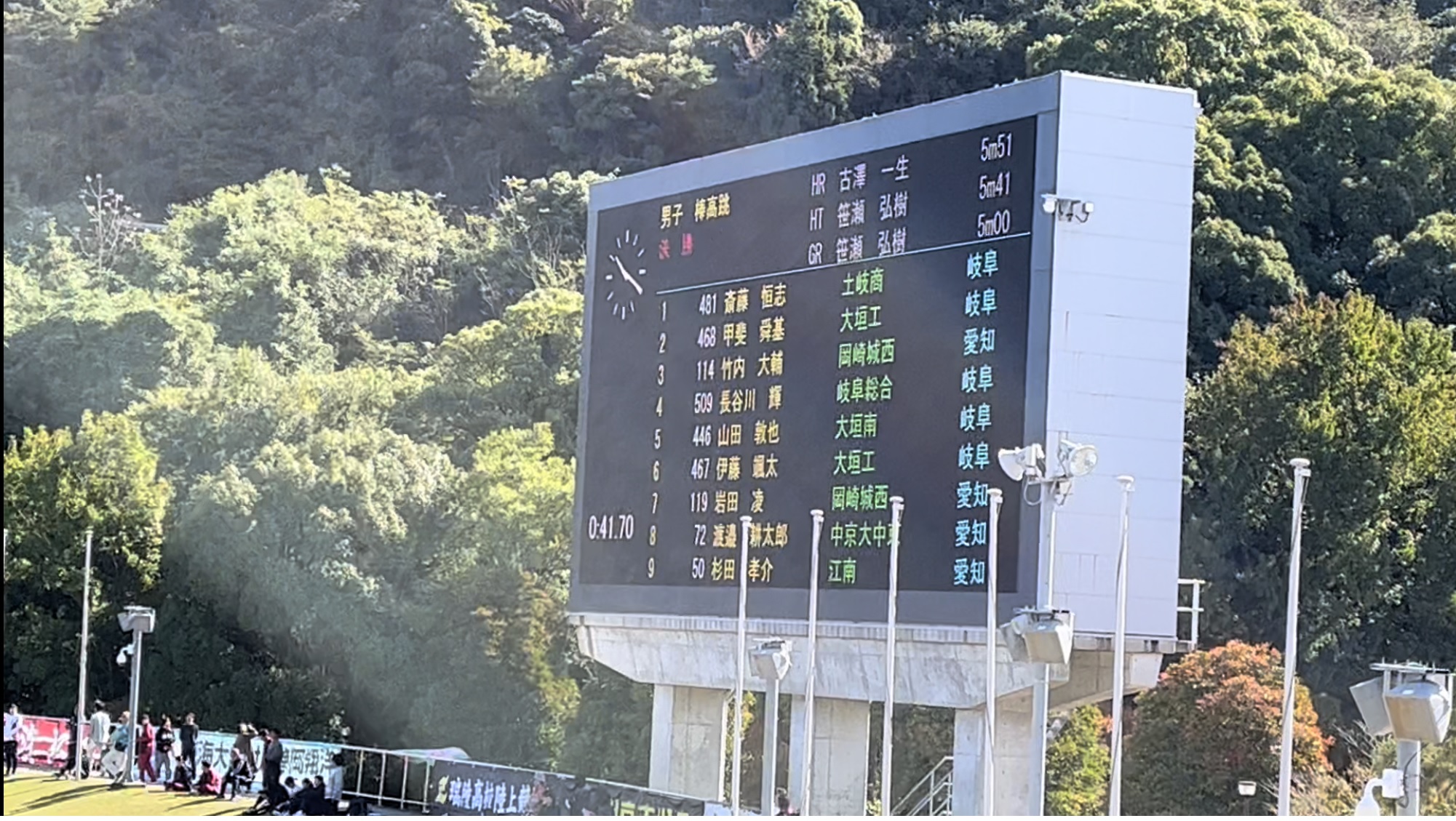 令和5年度東海高等学校新人体育大会(陸上競技) 2023年11月2日/カテゴリ: 行事レポート, 部活動, 陸上競技 /作成者: 江南高校10月28日(土)・29日(日)に三重県伊勢市の三重交通Gスポーツの杜陸上競技場で東海高等学校新人体育大会が開催されました。 本校からは、杉田孝介君が男子棒高跳に出場しました。 愛知・岐阜・三重・静岡4県を勝ち抜いた強豪が競い合う中、力を出し切りました。この経験をチームに還元し、4月の総体に向けて努力していきます。応援ありがとうございました。 https://ko-nan.ed.jp/wp-content/uploads/2023/11/陸上部東海大会棒高跳写真⑥1.jpg 1732 2309 江南高校 http://ko-nan.ed.jp/wp-content/uploads/2018/01/logo.png 江南高校2023-11-02 17:02:432023-11-06 08:26:30令和5年度東海高等学校新人体育大会(陸上競技)