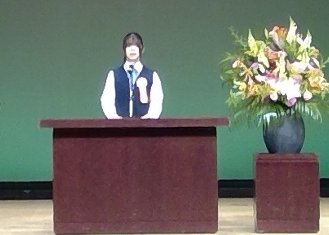 本校では、毎年2年生全員が作文に取り組み、その中から優秀作文を弁論大会で発表しています。今年も2名の代表生徒が出場し、「将来の夢」を主題に発表しました。
