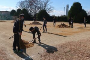 土ならし(12月25日) 2023年12月25日/カテゴリ: 学校日記 /作成者: 江南高校本日、グラウンドやハンドボールコートに土が入りました。午前中は先生方が、午後からは部活動の生徒の皆さんも一緒になって、土ならしを行いました。雨天時の水たまりが少しでも解消するといいですね。 https://ko-nan.ed.jp/wp-content/uploads/2023/12/s_IMG_8031-e1703574006548.jpg 200 300 江南高校 http://ko-nan.ed.jp/wp-content/uploads/2018/01/logo.png 江南高校2023-12-25 23:04:082023-12-26 16:04:26土ならし(12月25日)
