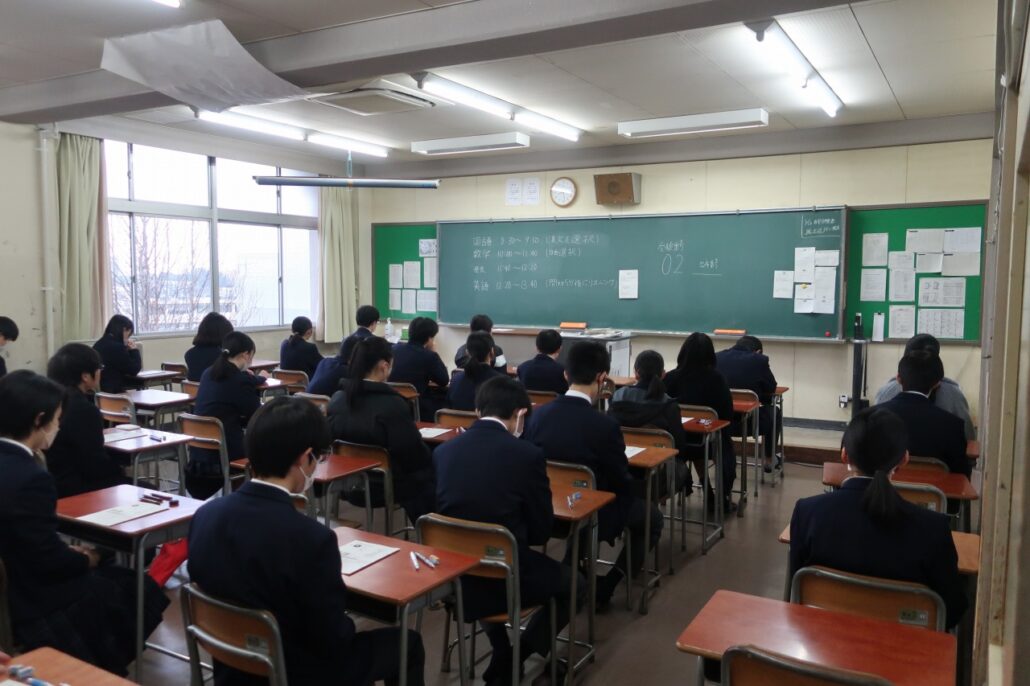 共通テスト・模試など(1月13日) 2024年1月13日/カテゴリ: 学校日記 /作成者: 江南高校本日は、大学入学共通テスト1日目でした。3年生三百余名は、名古屋工業大学と愛知大学名古屋校舎などの試験会場で、大学入学共通テスト(地理歴史・公民、国語、英語)に挑みました。 また、1・2年生の多くは、校内で模擬試験を受けました。一方、男女バレーボール、サッカー、男子バスケットボール、男子テニス、卓球の競技では、公式戦に出場しました。 明日は、大学入学共通テスト2日目(理科、数学)です。3年生の皆さんは、持てる力を出し切りましょう。健闘を祈ります。 https://ko-nan.ed.jp/wp-content/uploads/2024/01/s_IMG_8075-e1705122865654.jpg 200 300 江南高校 http://ko-nan.ed.jp/wp-content/uploads/2018/01/logo.png 江南高校2024-01-13 16:32:412024-01-13 16:32:41共通テスト・模試など(1月13日)