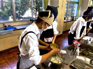 1年生調理実習 2024年4月25日/カテゴリ: 学校日記 /作成者: 江南高校1年生最初の調理実習をおこないました。生徒は数日前から調理実習を楽しみにしていました。班のメンバーと協力してアーモンドクッキーを作り、おいしくいただきました。 https://ko-nan.ed.jp/wp-content/uploads/2024/04/写真3.jpg 1730 2312 江南高校 http://ko-nan.ed.jp/wp-content/uploads/2018/01/logo.png 江南高校2024-04-25 19:26:172024-04-25 19:26:171年生調理実習