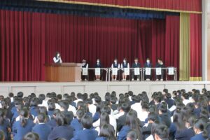 4/22(月)に前期生徒会役員選挙を行いました。今回は1年生から3年生の8名が立候補しました。どの候補者も江南高校をよりよくしたいという願いを込めて演説を行いました。投票の結果選ばれた新役員が23日(火)に各クラスに掲示されました。