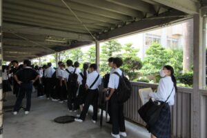 令和6年度学校見学会を行いました 2024年8月26日/カテゴリ: 行事レポート /作成者: 江南高校8月22日と23日に中学生向けの学校見学会を行いました。 江南市民文化会館での説明会のあと、本校1,2年生の生徒が校内を案内してくれました。部活動や校舎内の様子を熱心に見つめるたくさんの中学生の皆さんの姿が印象的でした。また、大変暑い中、気持ちよく案内係や自転車置き場係をしてくれた生徒の皆さん、本当にありがとうございました。 https://ko-nan.ed.jp/wp-content/uploads/2024/08/IMG_3964.jpg 1632 2449 江南高校 http://ko-nan.ed.jp/wp-content/uploads/2018/01/logo.png 江南高校2024-08-26 11:45:232024-08-26 11:45:23令和6年度学校見学会を行いました