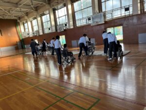 令和6年度1年生福祉実践教室 2024年11月1日/カテゴリ: 行事レポート /作成者: 江南高校10月28日(月)に、江南市社会福祉協議会様より講師をお招きし、1年生の福祉実践教室を実施しました。 実施講座は、車いす(1組)、高齢者疑似体験(2組)、手話(3組)、要約筆記(4組)、点字(5組)、視覚障がい者ガイド(6組)、盲ろう者通訳ガイド(7組)、知的障がい者軽スポーツ(8組)の8講座です。 どの講座も生徒たちは意欲的に取り組んでいました。講義と実践により、様々な福祉の在り方について理解を深めることができました。講師の先生方、ありがとうございました。 https://ko-nan.ed.jp/wp-content/uploads/2024/11/①車いす【圧縮】.jpg 1732 2309 江南高校 http://ko-nan.ed.jp/wp-content/uploads/2018/01/logo.png 江南高校2024-11-01 11:49:262024-11-01 11:49:26令和6年度1年生福祉実践教室