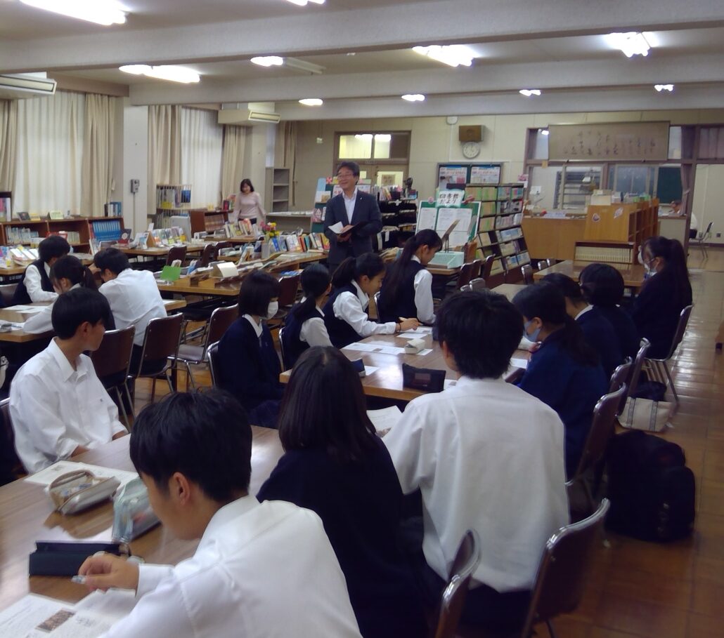 10月29日に図書室において、読書感想文コンクール(校内)の表彰と文化講座を実施しました。