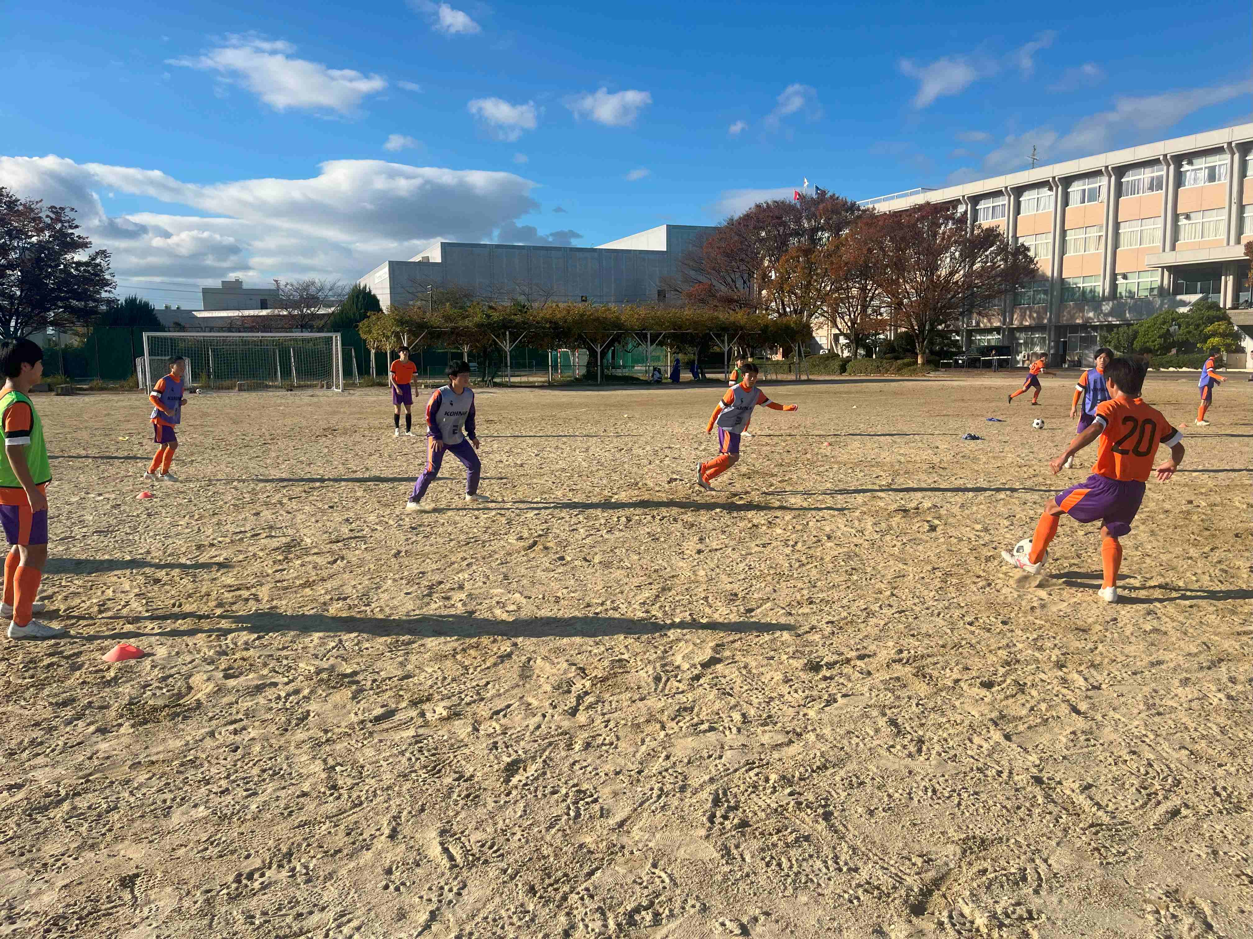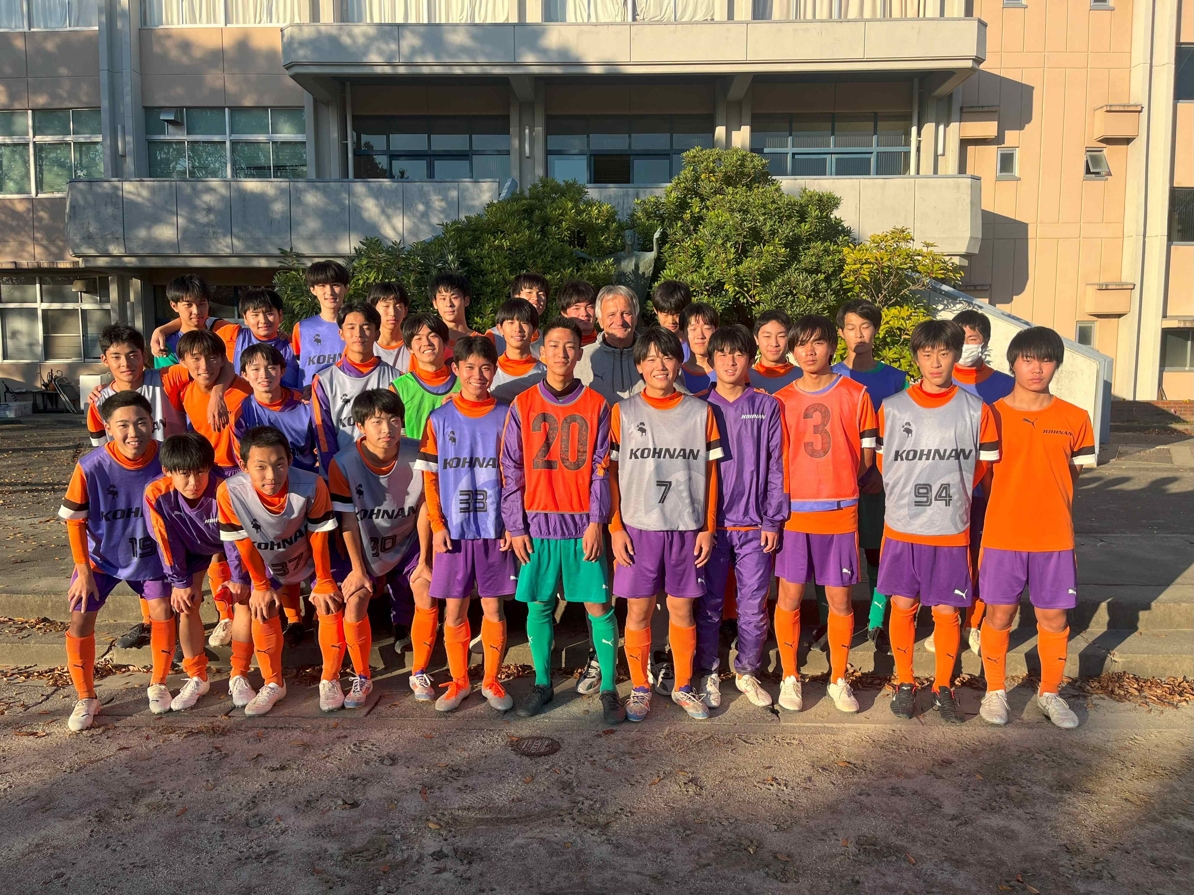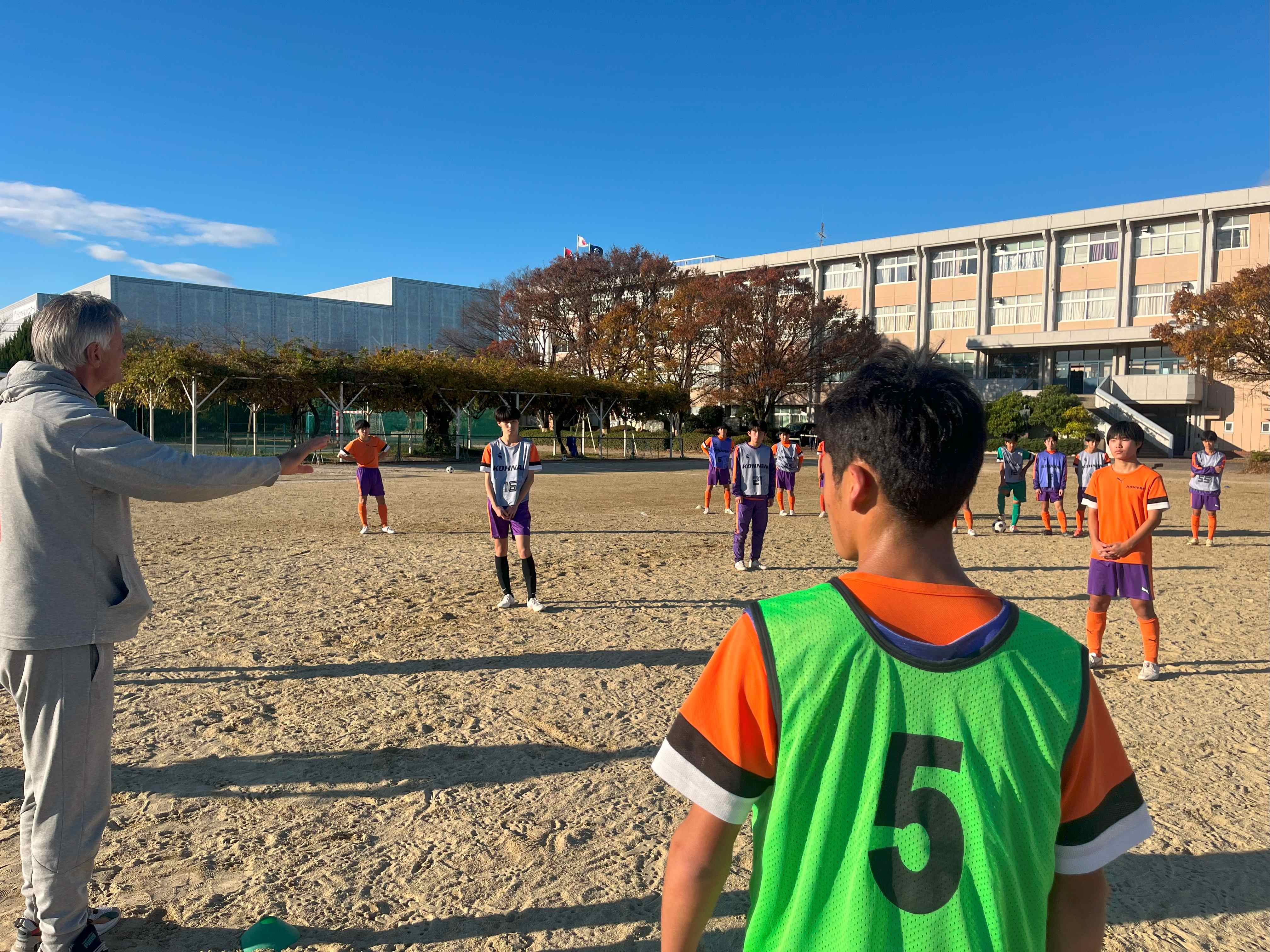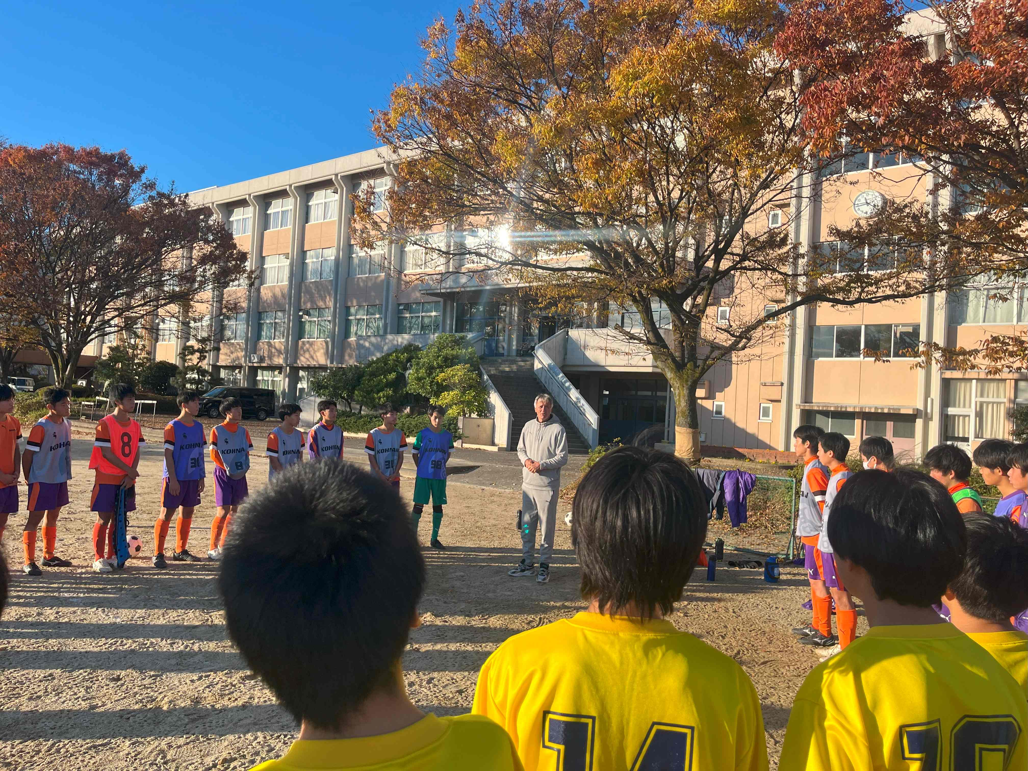 12月1日(日)、Jリーグで監督を務めたゼムノビッチ・ズドラヴコ氏が来校し、本校サッカー部員が特別指導を受けた。また、今回は江南西部中学校サッカー部と合同で行った。