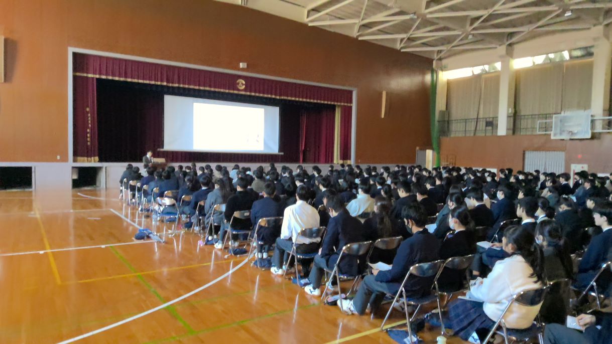 1年生探究(平和学習) 2025年3月18日/カテゴリ: 学校日記 /作成者: 江南高校3月17日の5時間目の総合的な探究の時間に、平和学習を行いました。 本校の社会科の教員が、体育館に集合した1年生を前に、ワークシートを用いて戦争や平和について講義を行う形式でした。生徒たちはクラスメイトと議論しながら各自ワークシートに考えをまとめていました。 2年生では修学旅行で広島を訪問します。平和についての考えを深めるきっかけとなったのではないでしょうか。 https://ko-nan.ed.jp/wp-content/uploads/2025/03/WIN_20250317_14_43_44_Pro.jpg 686 1219 江南高校 http://ko-nan.ed.jp/wp-content/uploads/2018/01/logo.png 江南高校2025-03-18 11:46:062025-03-18 11:46:061年生探究(平和学習)