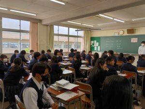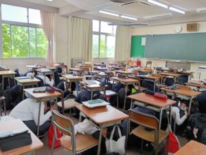 避難訓練を行いました 2025年5月15日/カテゴリ: 行事レポート /作成者: 江南高校5月12日(月)6限に避難訓練を行いました。 本日は残念ながら昨晩の降雨の影響でグランドの状態が悪かったため、雨天案での実施となりました。 訓練の内容としては、まず担任による有事の際の基本経路の確認をしました。 次にシェイクアウト訓練を行い、最後に防災講話としてクイズ形式で10題の問題に取り組みました。 一人ひとり真剣に担任の話を聞き、シェイクアウト訓練を行い、クイズには皆と意見交換しながら取り組んでいました。 https://ko-nan.ed.jp/wp-content/uploads/2025/05/IMG_20250512_151505.jpg 3072 4080 江南高校 http://ko-nan.ed.jp/wp-content/uploads/2018/01/logo.png 江南高校2025-05-15 10:36:012025-05-15 10:36:01避難訓練を行いました