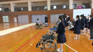 令和7年度 福祉実践教室 2025年11月5日/カテゴリ: 行事レポート /作成者: 江南高校10月27日(月)に、江南市社会福祉協議会様より講師をお招きし、1年生の福祉実践教室を実施しました。 実施講座は、車いす(1組)、知的障がい者軽スポーツ(2組)、高齢者疑似体験(3組)、手話(4組)、盲ろう者通訳ガイド(5組)、点字(6組)、要約筆記(7組)、視覚障がい者ガイド(8組)の8講座です。 どの講座も生徒たちは意欲的に取り組んでいました。 講義と実践により、様々な福祉の在り方について理解を深めることができました。 学んだことを、これからの生活に役立てていきたいと思います。 講師の先生方、ありがとうございました。 https://ko-nan.ed.jp/wp-content/uploads/2025/11/❶車いす.jpg 2286 4064 江南高校 http://ko-nan.ed.jp/wp-content/uploads/2018/01/logo.png 江南高校2025-11-05 08:39:172025-11-05 08:39:17令和7年度 福祉実践教室