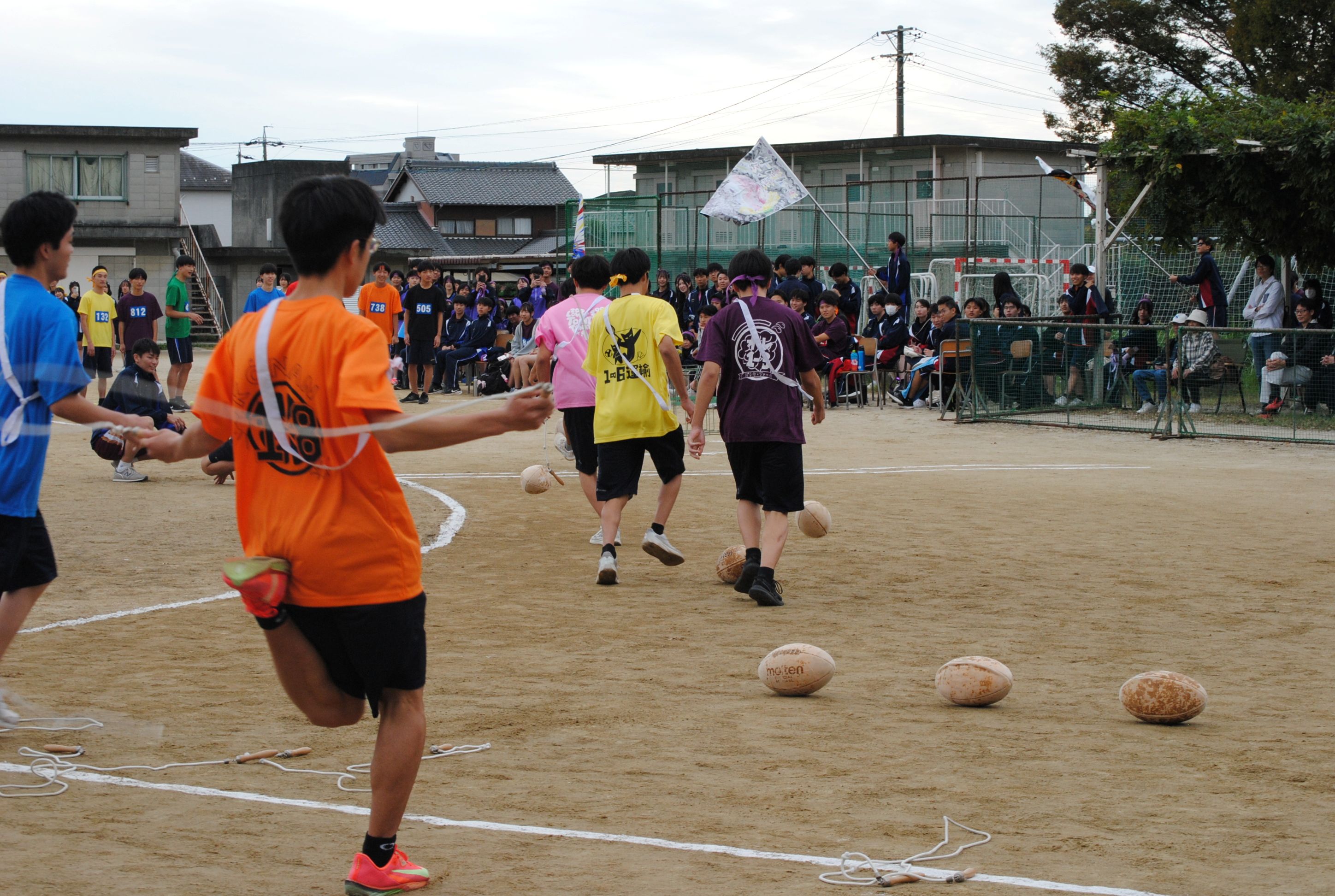 応援には、8月の藤波祭準備期間中に作成したクラスフラッグが応援旗として使われ、体育祭を盛り上げました。