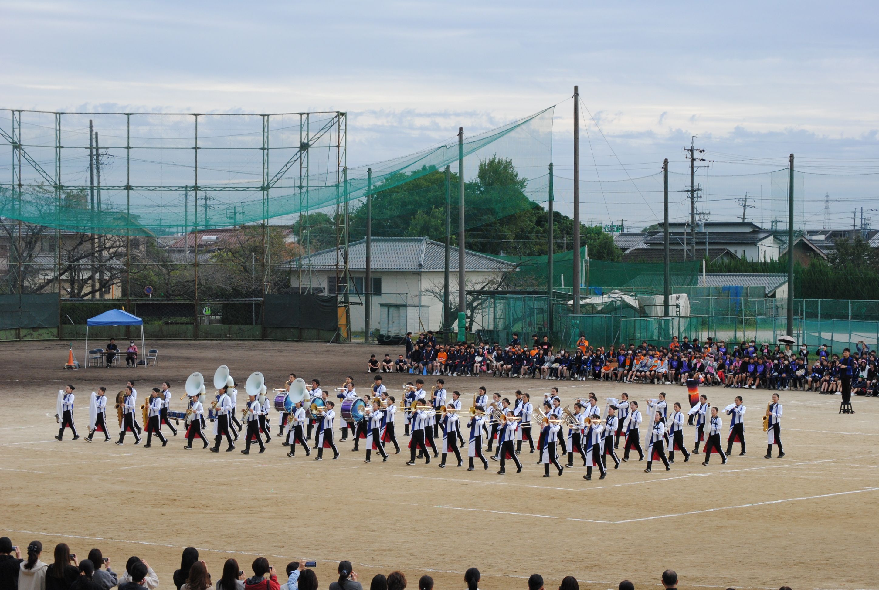 体育祭の締めくくりとして吹奏楽部のマーチングも披露され、華やかな衣装と素晴らしい演奏で観客を魅了しました。