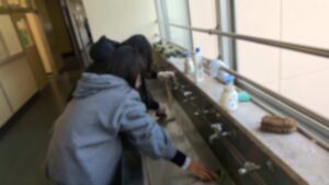 普段の時間ではできないような場所も丁寧に清掃を行い、各教室にワックスをしました。