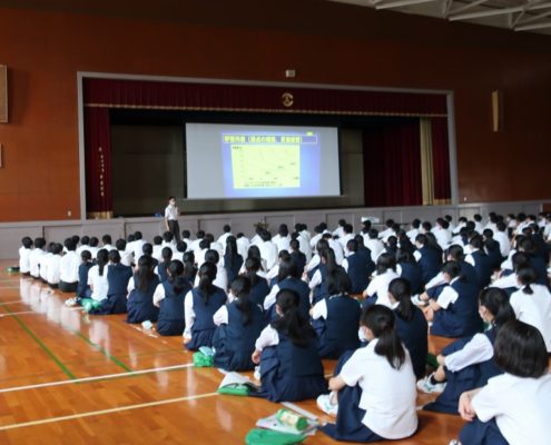 本日、第6時限に3年生は体育館に集まり、…