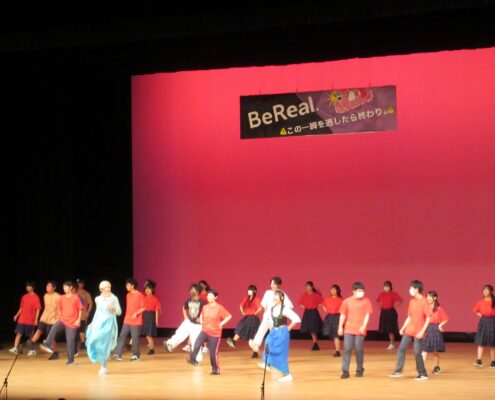 また、江南市民文化会館では吹奏楽部と箏曲部の発表、茶華道部のお茶会、有志発表での生徒たちのダンスやバンド演奏、新体操部の発表など盛りだくさんの内容でした。